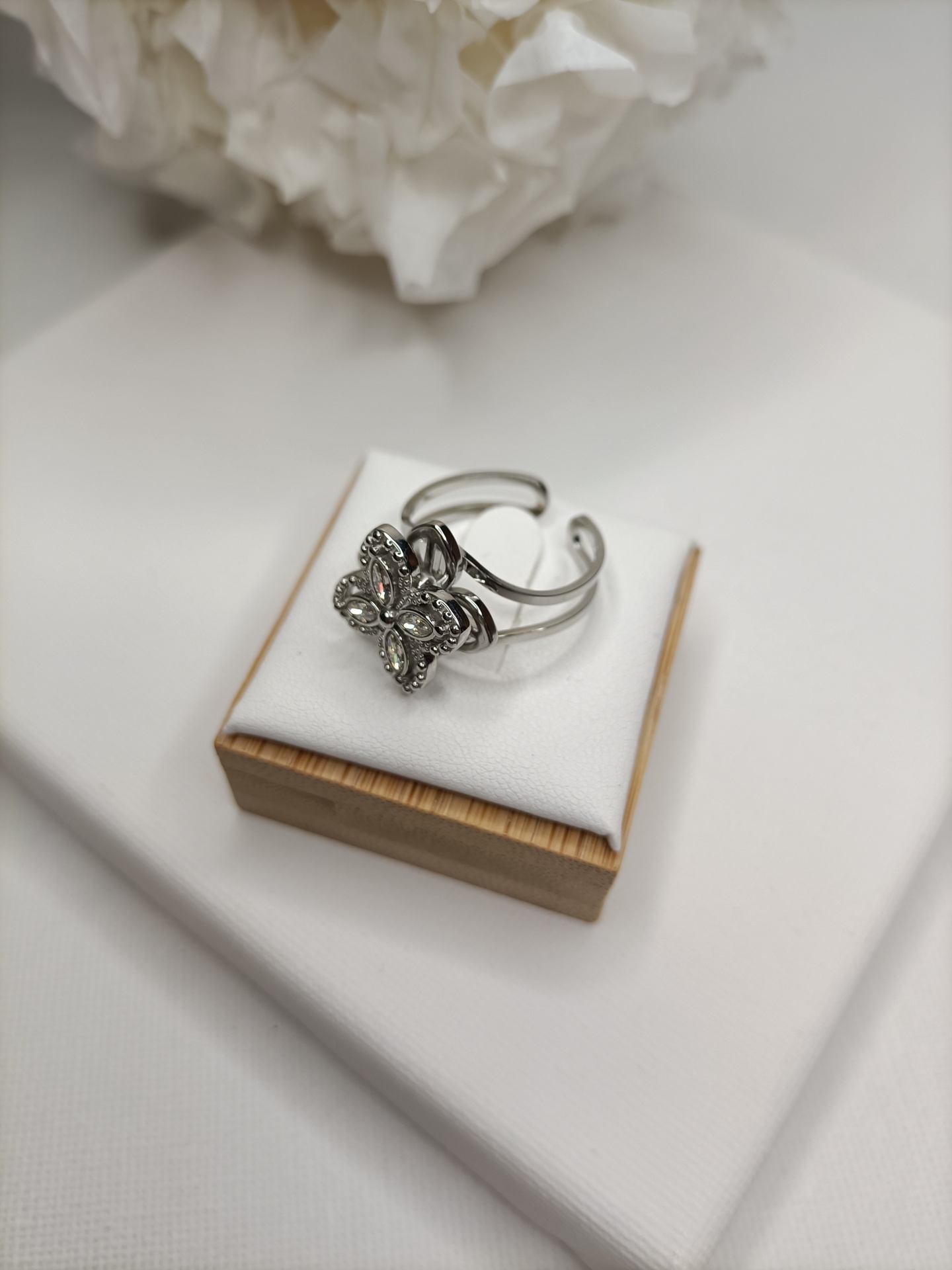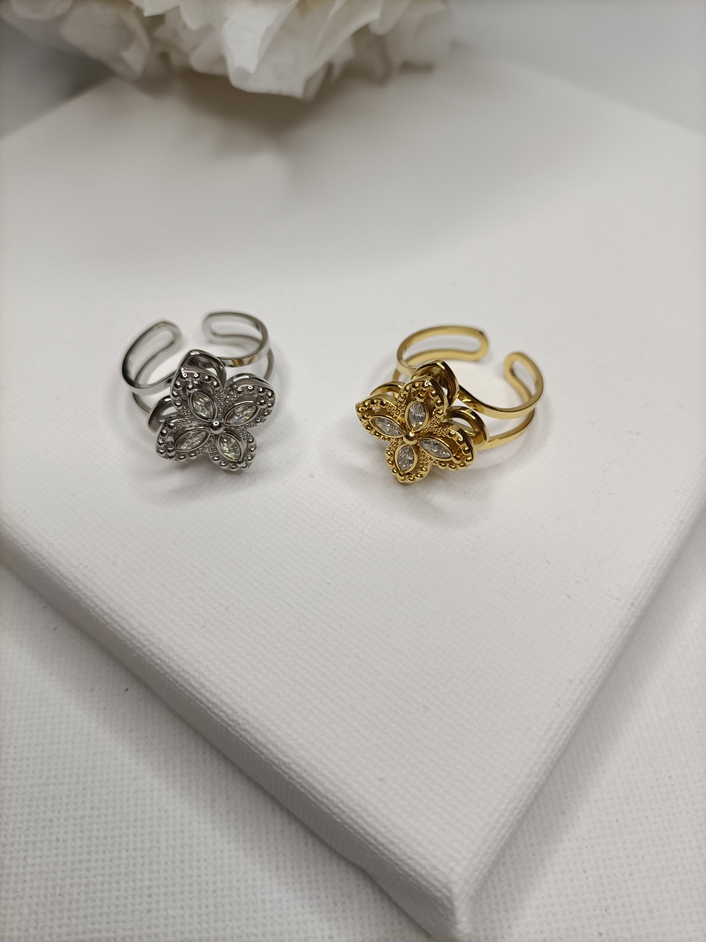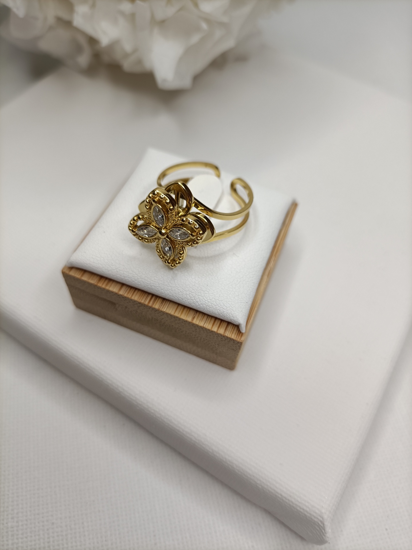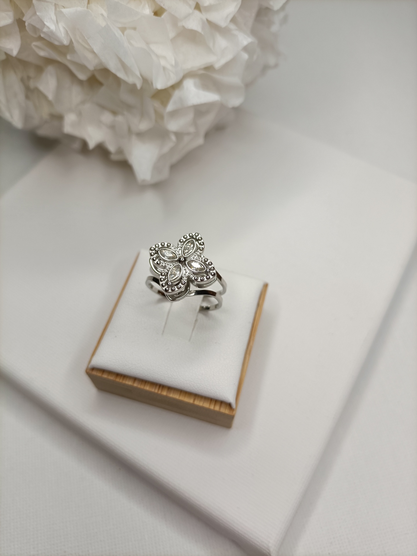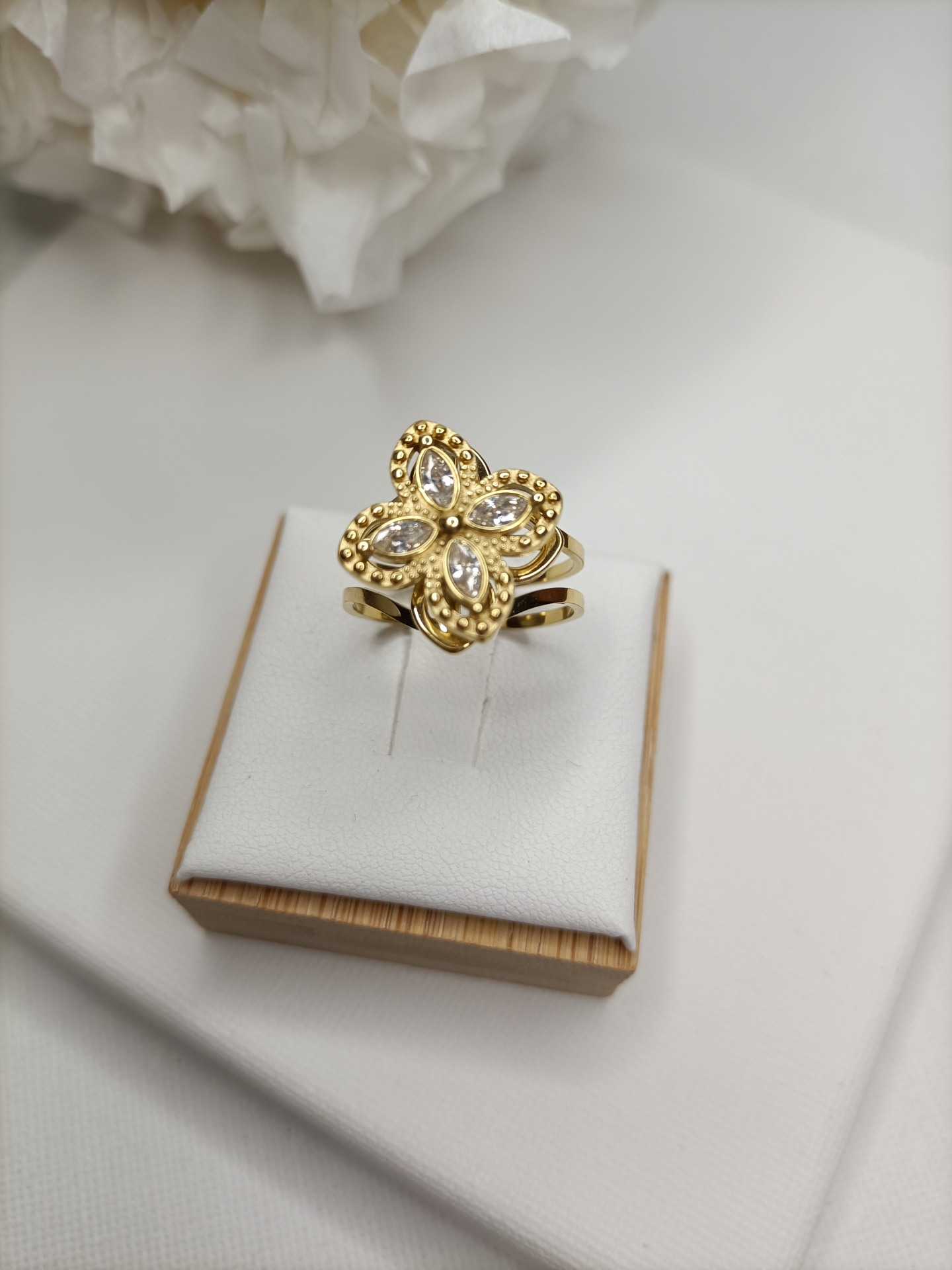 Anel Anti-stress 10,90 € Desconto de %. Partilhar Cor Dourado Prateado Comprar Contactar SKU: MB162 Flor de quatro pétalas com zircónias. 🔸 Material: Aço inoxidável 🔸 Tamanho: ajustável (recomendo para tamanho 17 a 19)