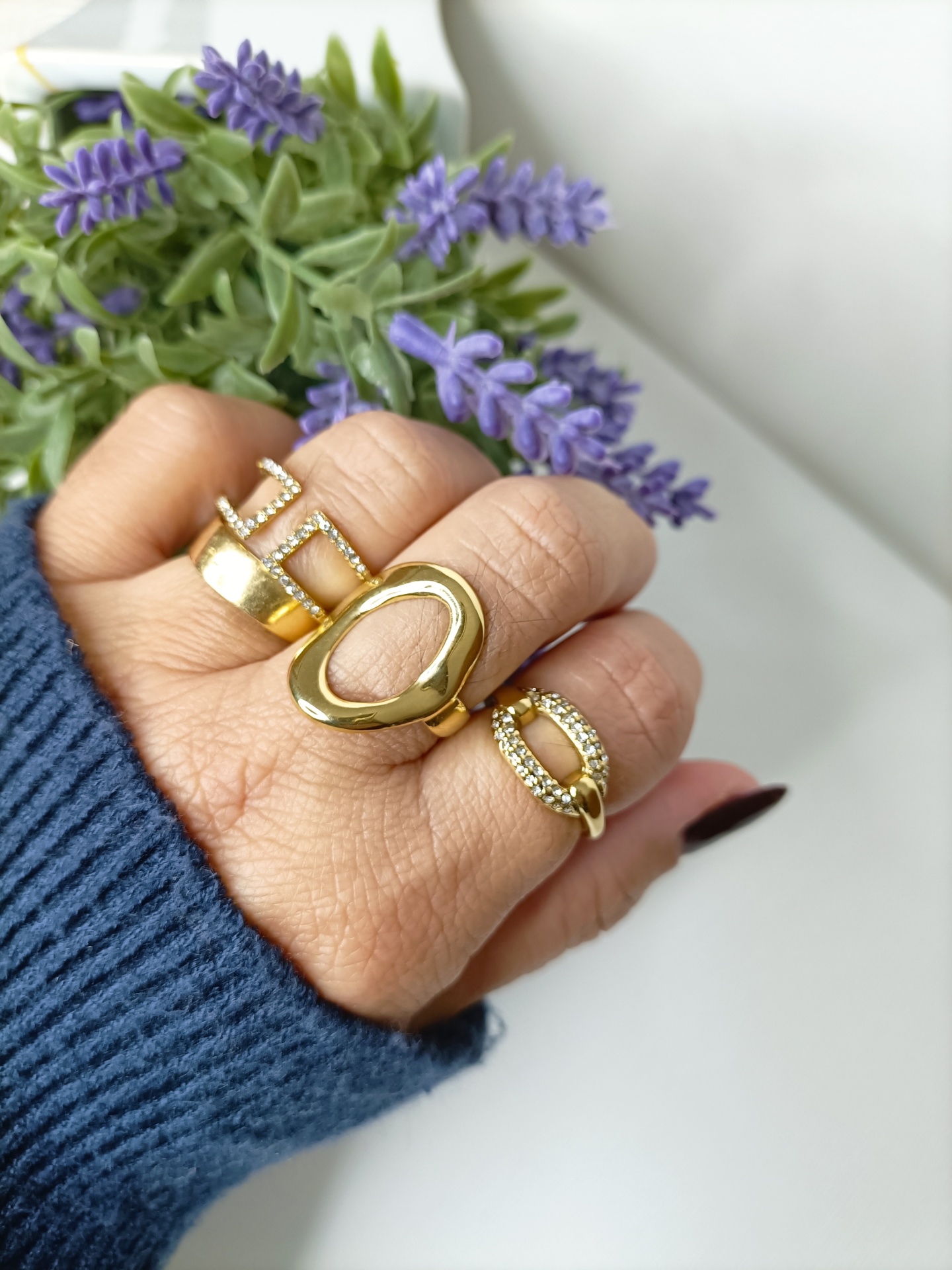 Anel Bianca 9,90 € Desconto de %. Partilhar Cor Dourado Prateado Comprar Contactar SKU: MB115 Com um design de formas geométricas e irregulares. 🔸 Material: Aço inoxidável 🔸 Tamanho: ajustável (recomendo para tamanho 16/17)