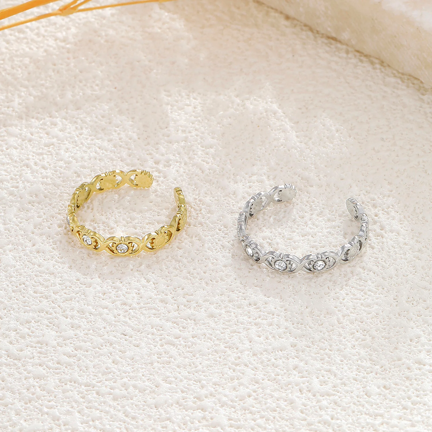 Anel Infinito 8,90 € Desconto de %. Partilhar Cor Dourado Prateado Comprar Contactar SKU: MB82 Anel com símbolo infinito e 3 zirconias ao centro. 🔸 Material: Aço inoxidável 🔸 Tamanho: ajustável (recomendo para tamanho 16/17/18)