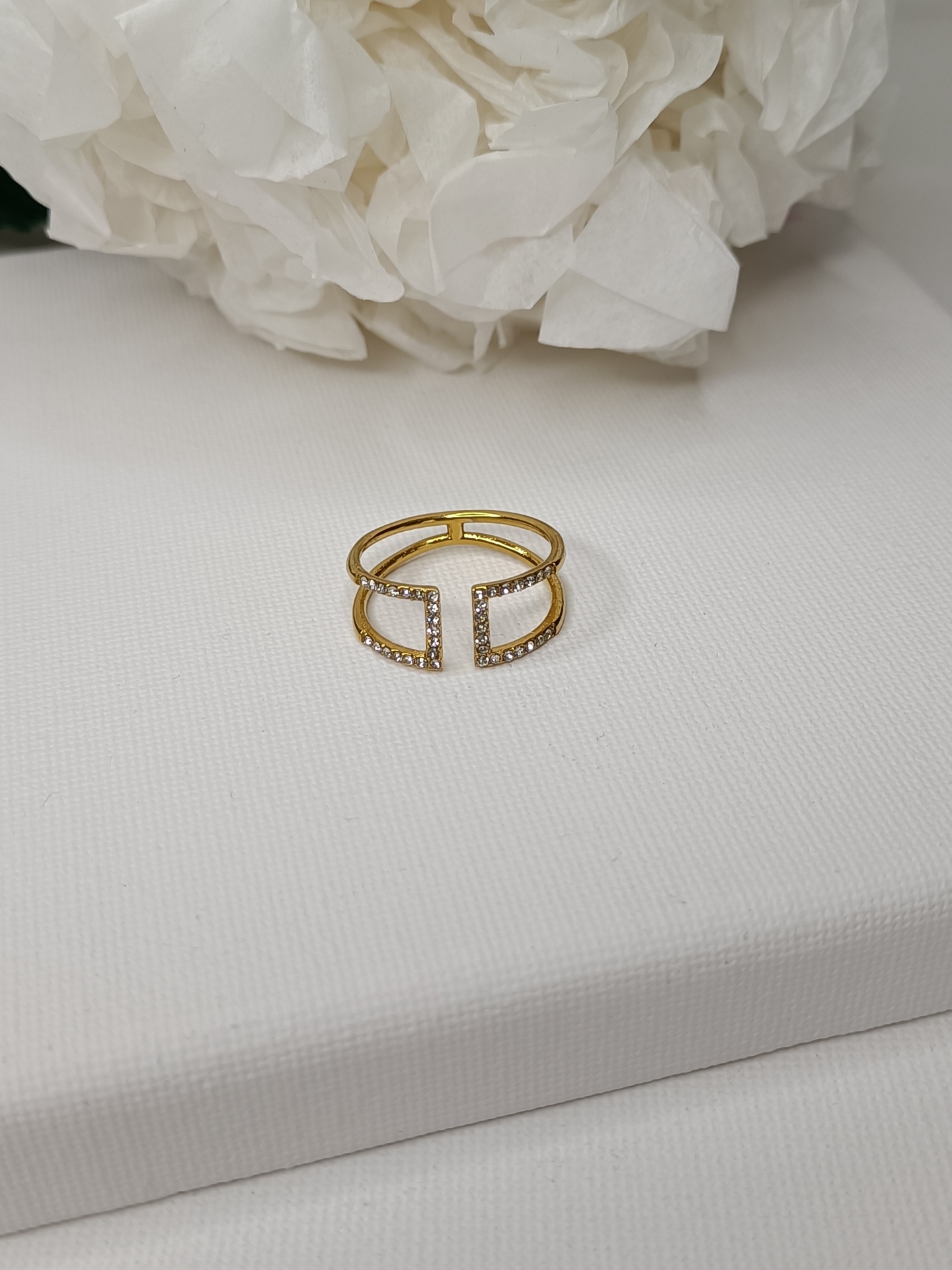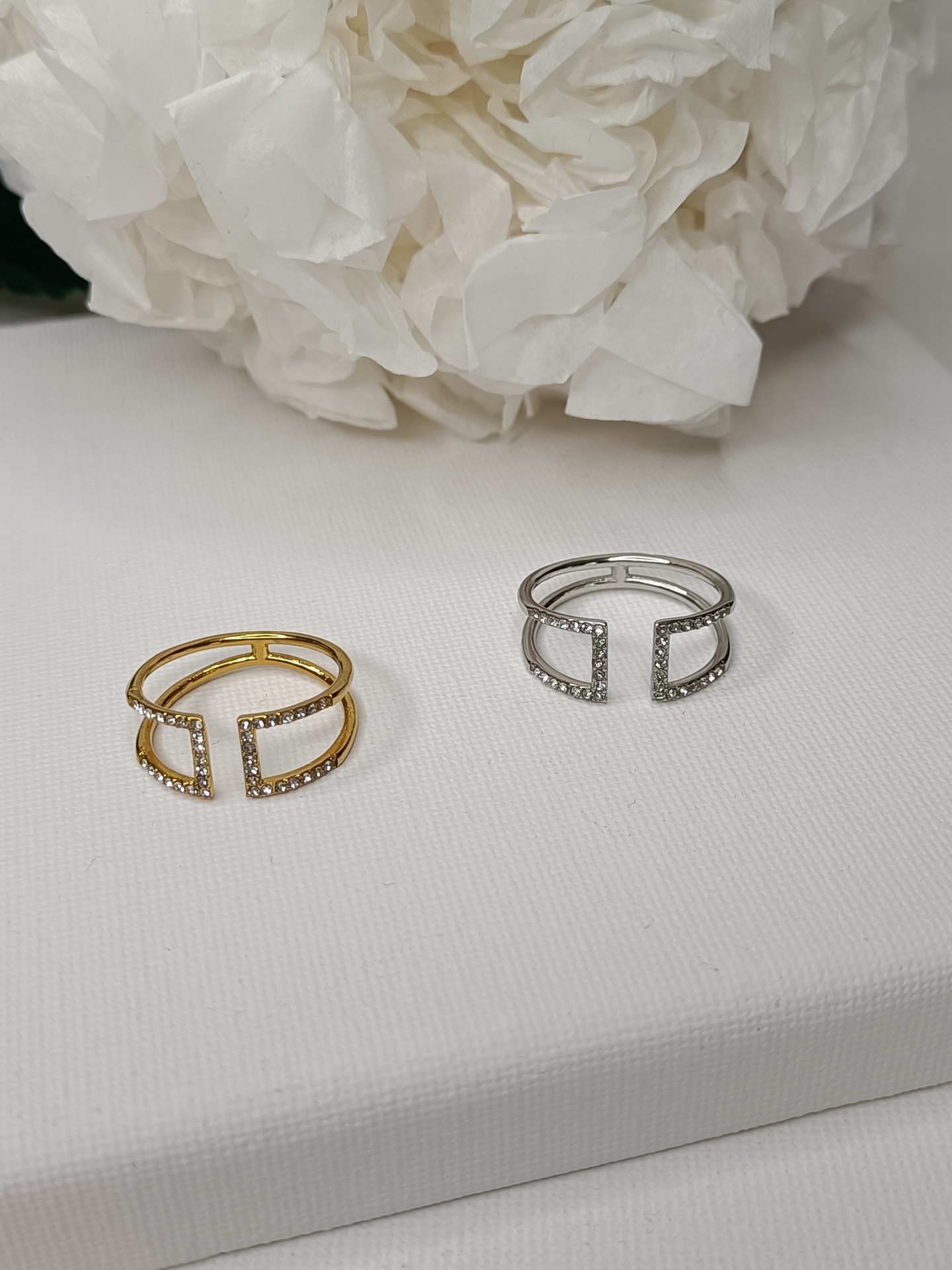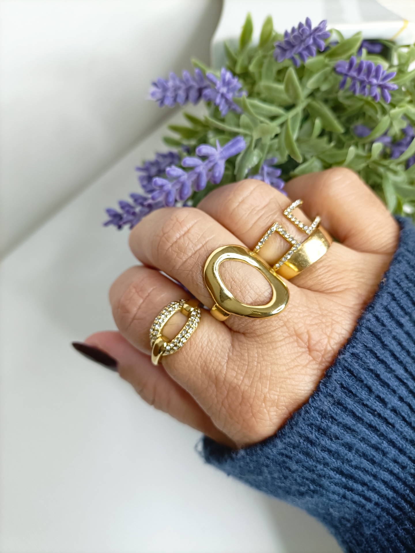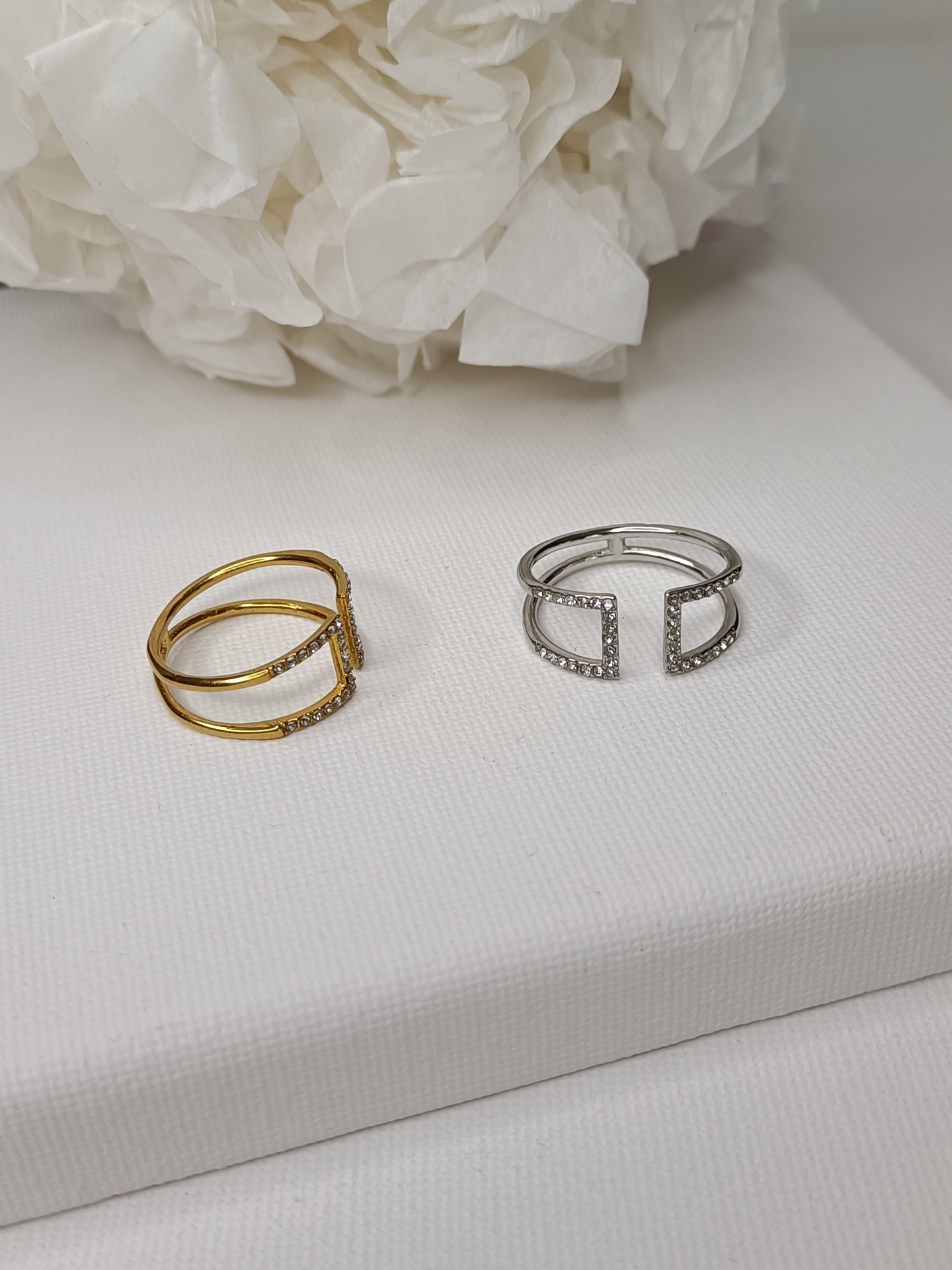 Anel Ivone 7,90 € Desconto de %. Partilhar Cor Dourado Prateado Comprar Contactar SKU: MB125 Anel com abertura na frente e cravejada de zirconias. Liso atrás. 🔸 Material: Aço inoxidável 🔸 Tamanho: ajustável (recomendo para tamanho 16/17)