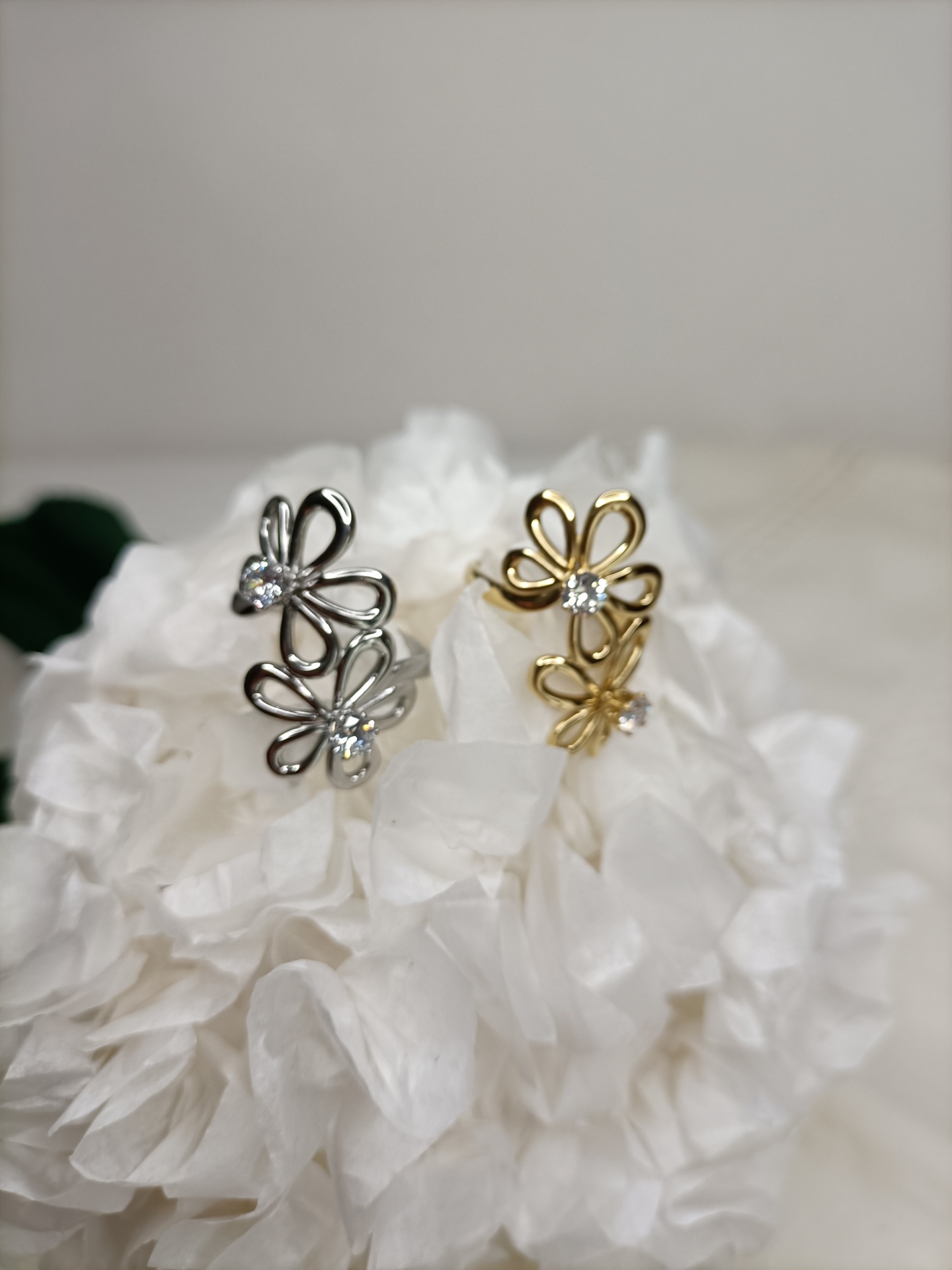 Anel Margaridas 8,90 € Desconto de %. Partilhar Cor Dourado Prateado Comprar Contactar SKU: MB83 Anel com duas margaridas e duas zirconias. 🔸 Material: Aço inoxidável 🔸 Tamanho: ajustável (recomendo para tamanho 16/17/18)