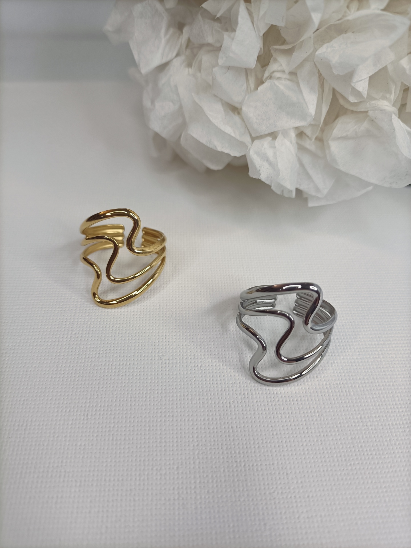 Anel Onda 11,90 € Desconto de %. Partilhar Cor Dourado Prateado Comprar Contactar SKU: MB207 Moderno e marcante, este anel em aço com um toque geométrico e elegante num acessório único. 🔸 Material: Aço inoxidável 🔸 Tamanho: ajustável (recomendo para tamanho 17 a 20)