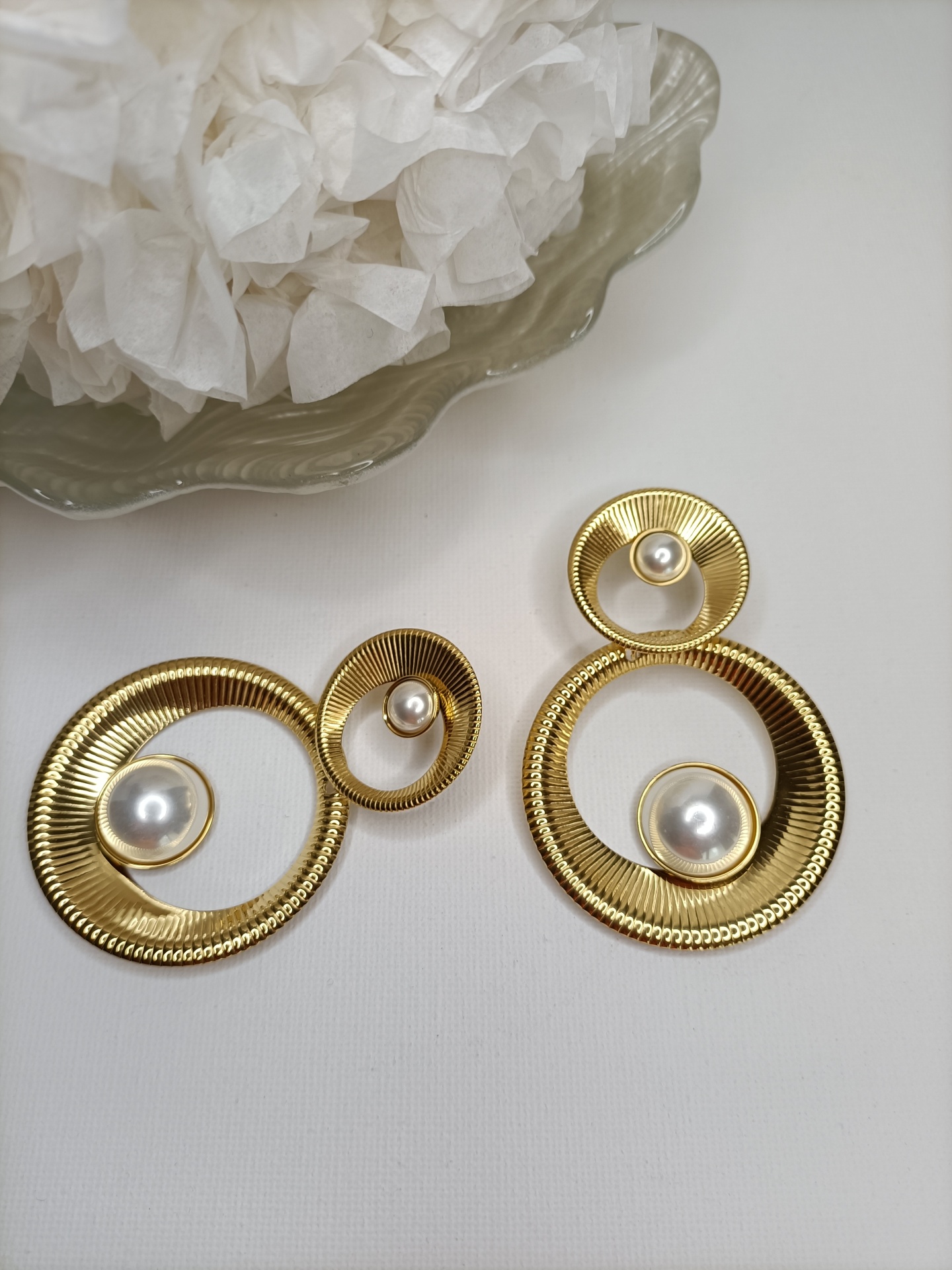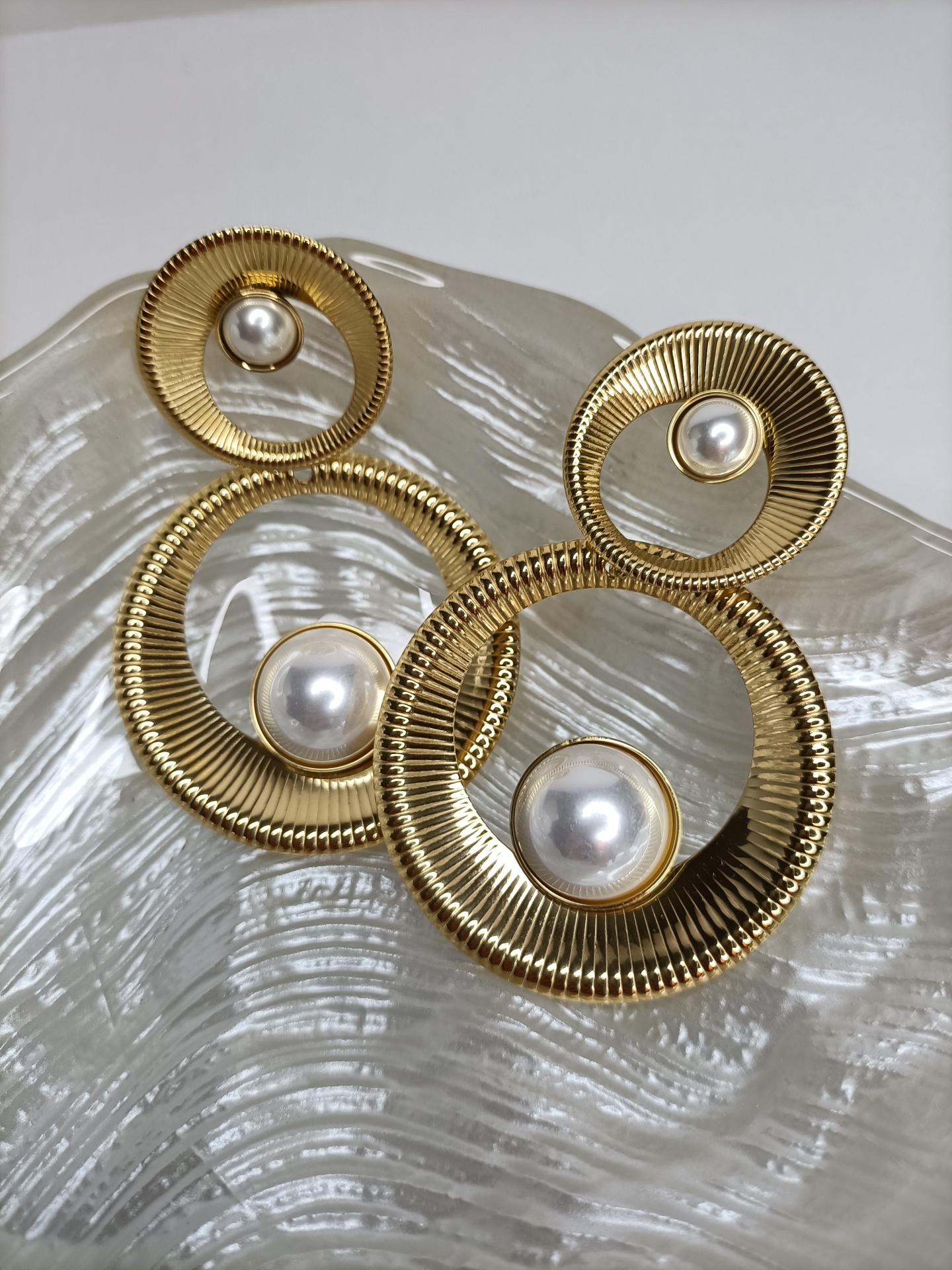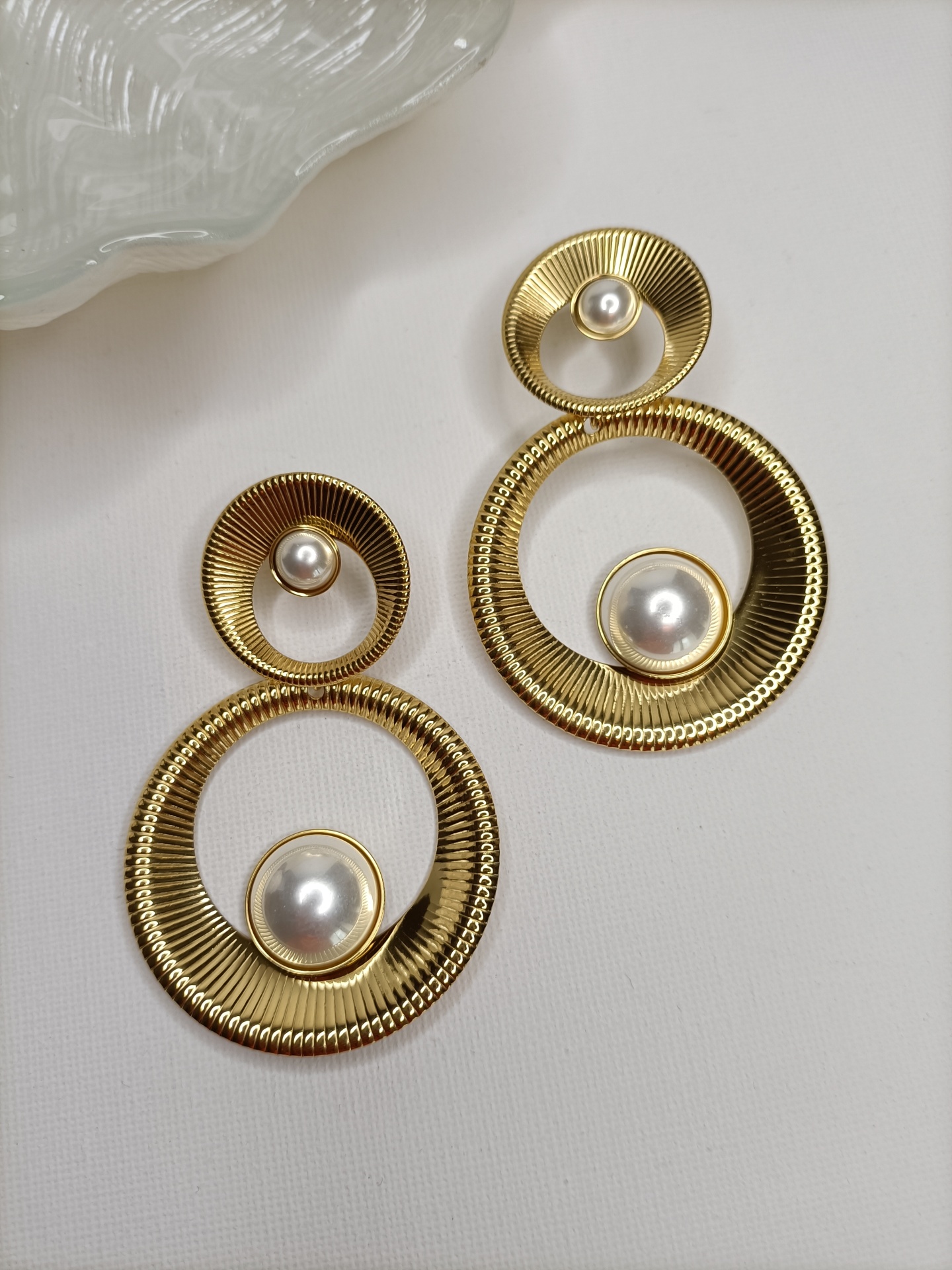Brincos Diana 12,00 € Desconto de %. Partilhar O produto encontra-se sem stock. Dois aros texturados e adornados com pérolas. 🔸 Material: Aço inoxidável 🔸 Comprimento: 7cm