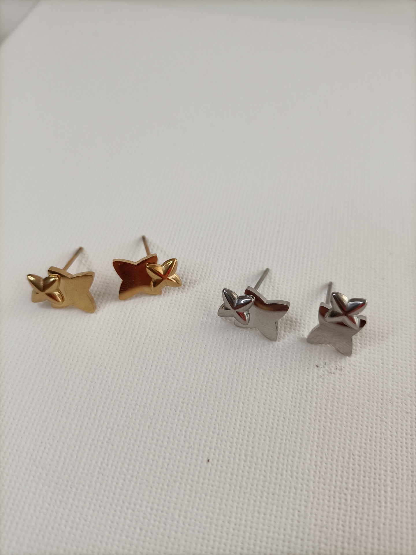 Brincos Leonora 9,60 € Desconto de %. Partilhar Cor Dourado Prateado Comprar Contactar SKU: MB225 Este brinco elegante em aço apresenta uma dupla estrela, criando um acessório que combina textura, brilho e feminilidade. 🔸 Material: Aço inoxidável 🔸 Tamanho: 1cm Combina com o: Colar Leonora