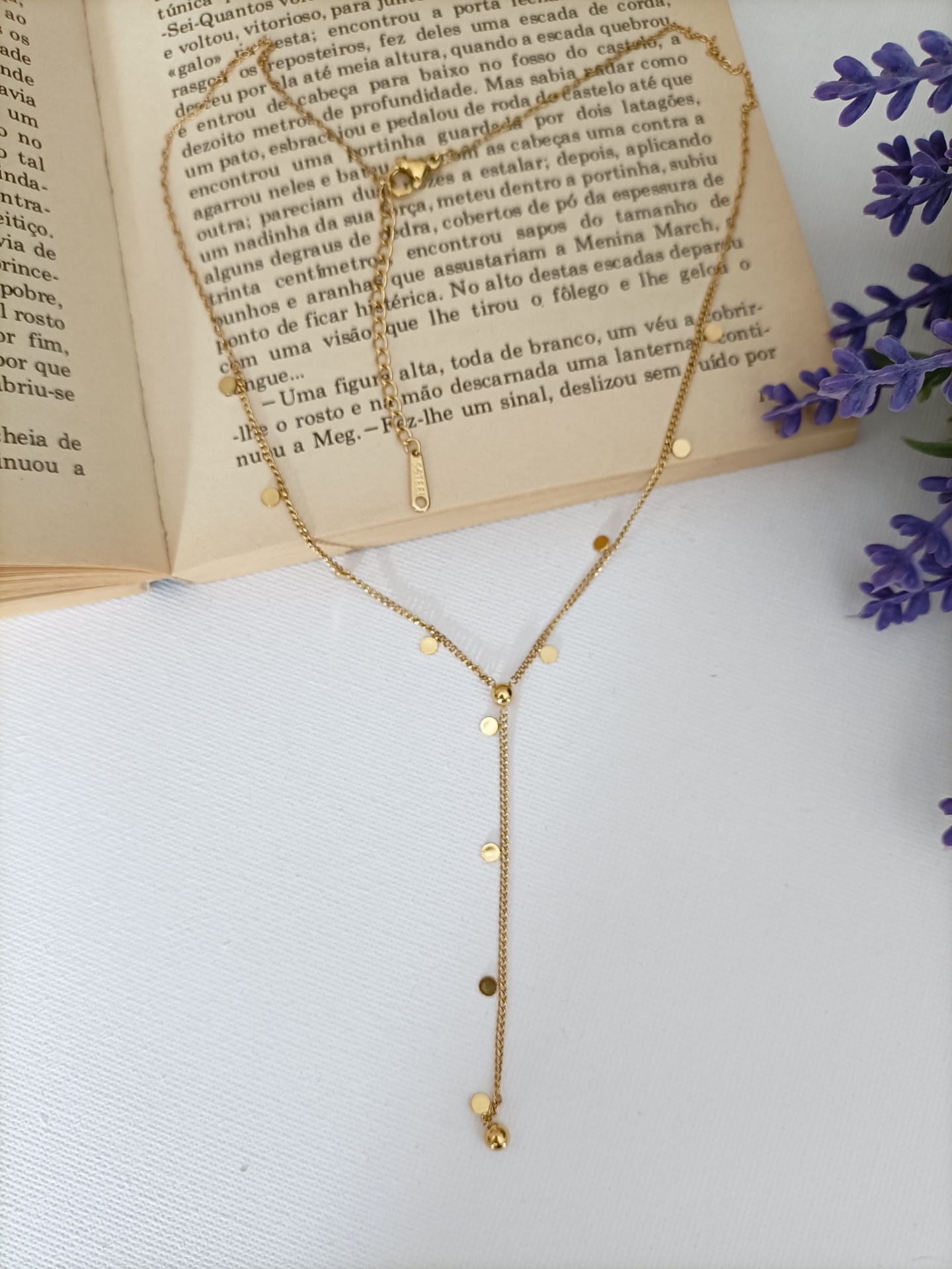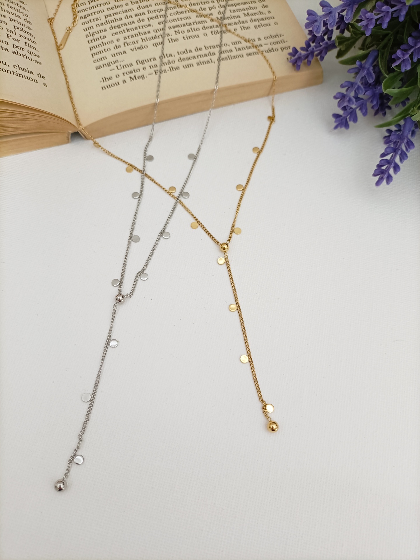 Colar Artémis 12,90 € Desconto de %. Partilhar Cor Dourado Prateado Comprar Contactar SKU: MB45 Colar em forma de Y com bolas. Artémis a Deusa da caça. 🔸 Material: Aço inoxidável. 🔸 Comprimento: ajustável (41cm + 5cm de extensão) Comprimento do pendente: 6cm