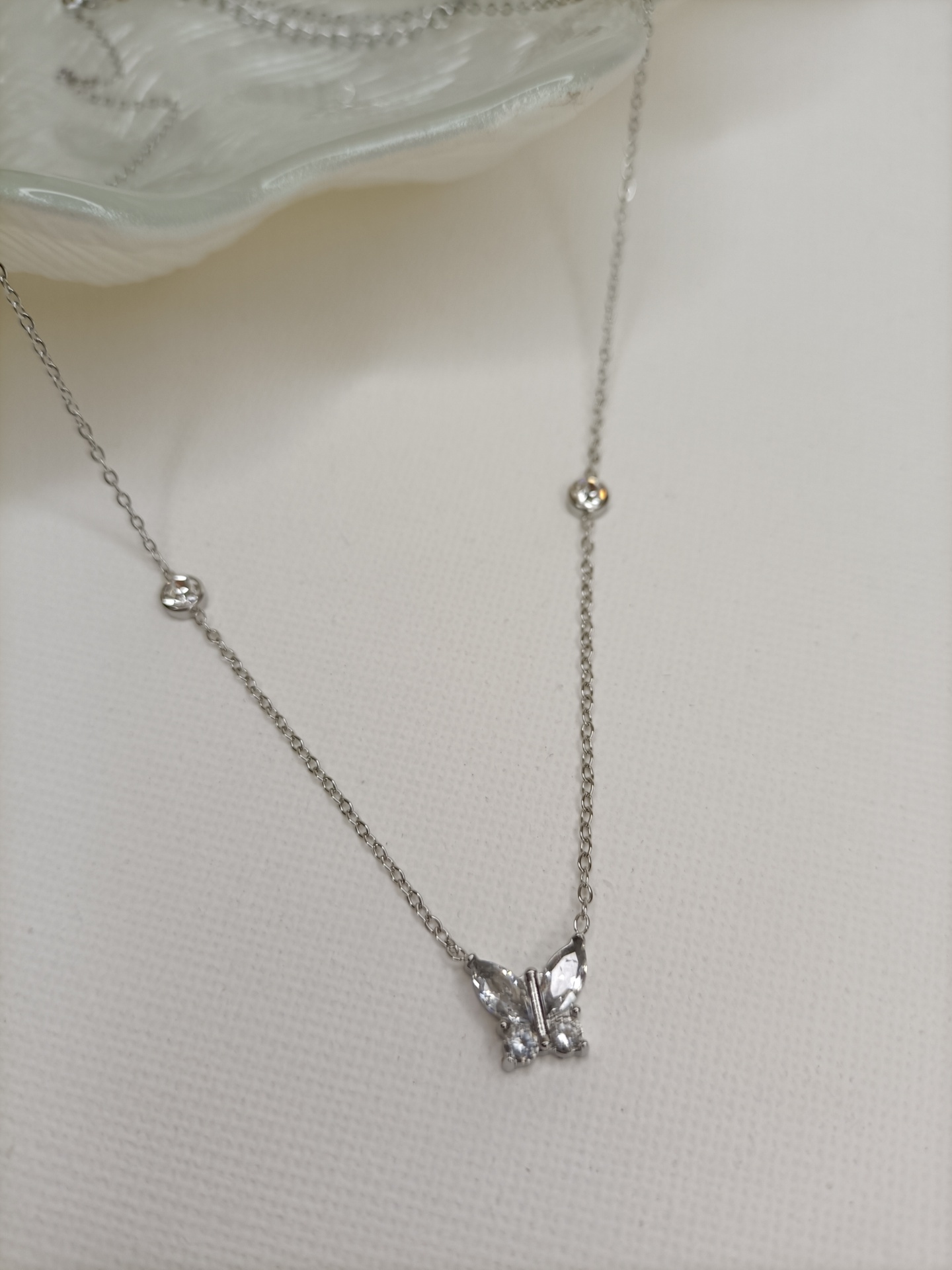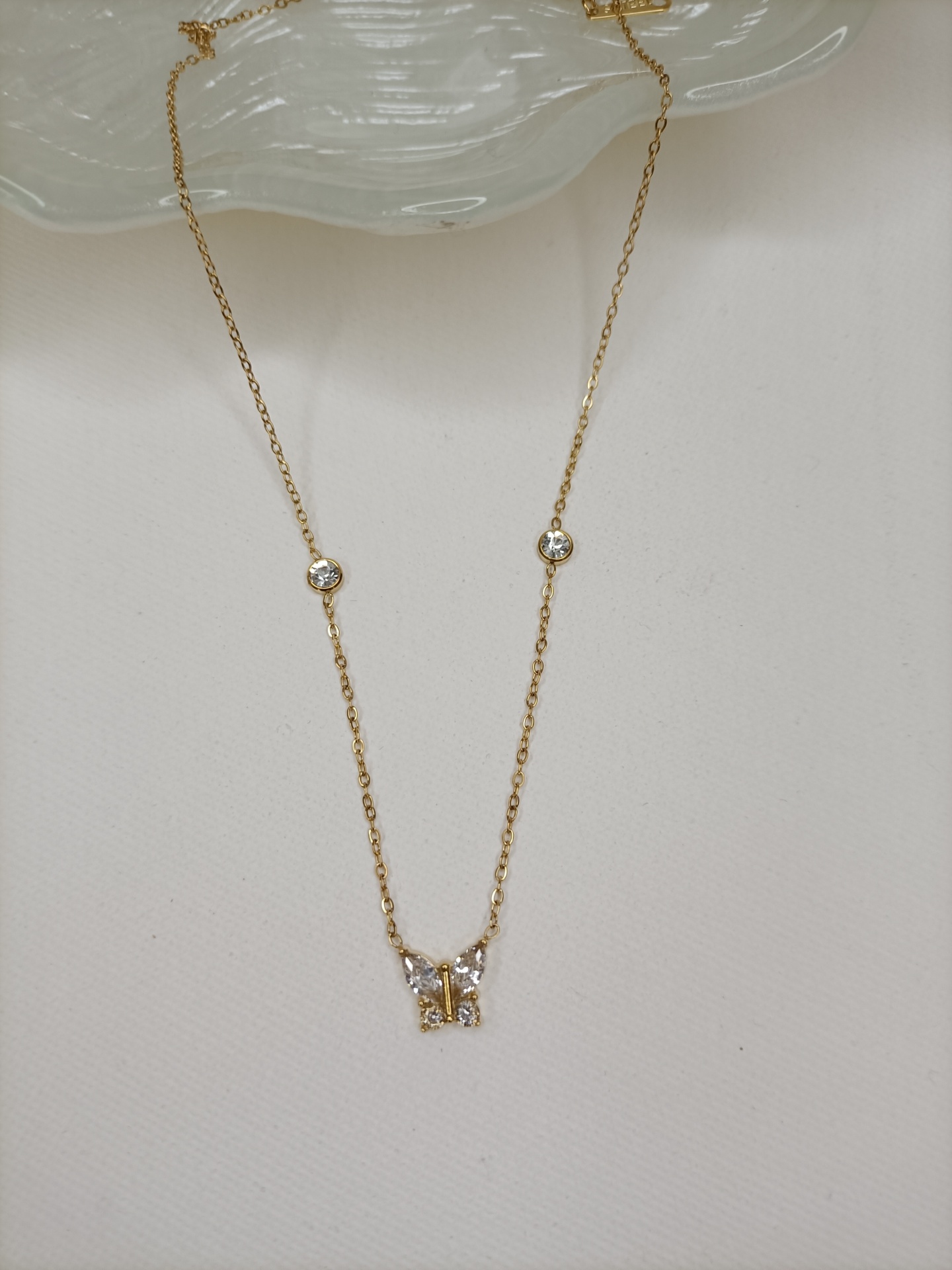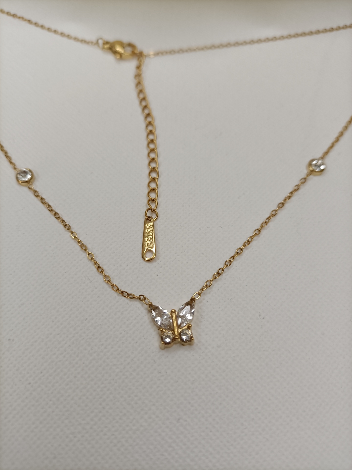 Colar Borboleta 9,90 € Desconto de %. Partilhar Cor Dourado Prateado Comprar Contactar SKU: MB97 Simples e delicado este colar com uma pequena borboleta com brilhantes e outros dois como apontamento. 🔸 Material: Aço inoxidável 🔸 Comprimento: ajustável (40cm + 5cm de extensão)