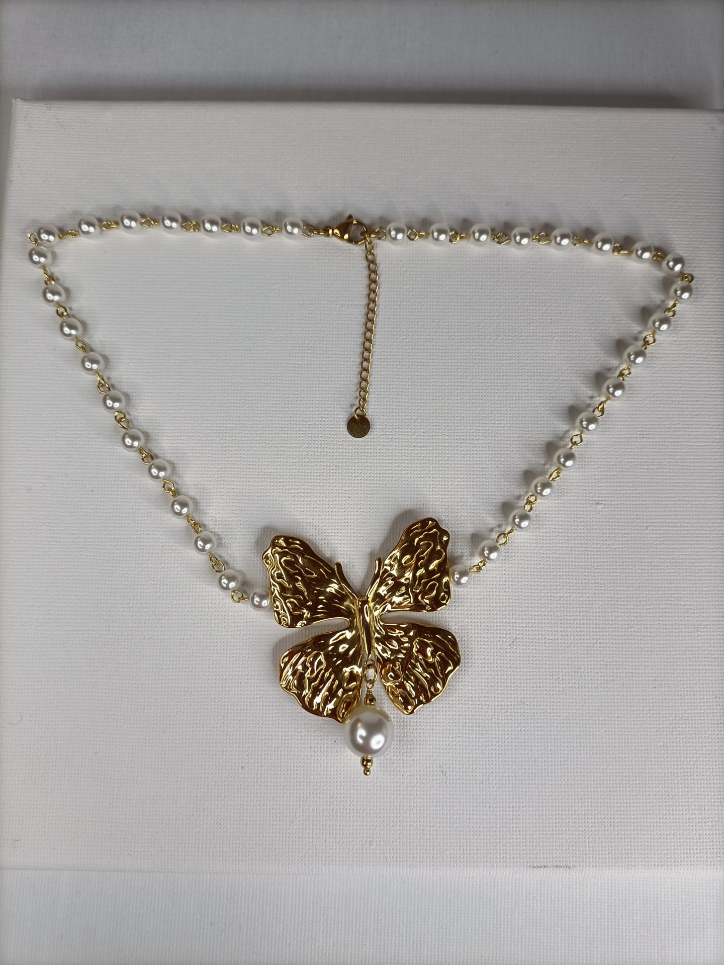 Colar Borboleta 15,00 € Desconto de %. Partilhar Cor Dourado Prateado Comprar Contactar SKU: MB210 As pérolas regressaram neste colar elegante e versátil. Seja num look minimalista ou mais ousado, este colar adiciona um toque de sofisticação. 🔸 Material: Aço inoxidável 🔸 Comprimento: ajustável (43cm + 5cm de extensão)