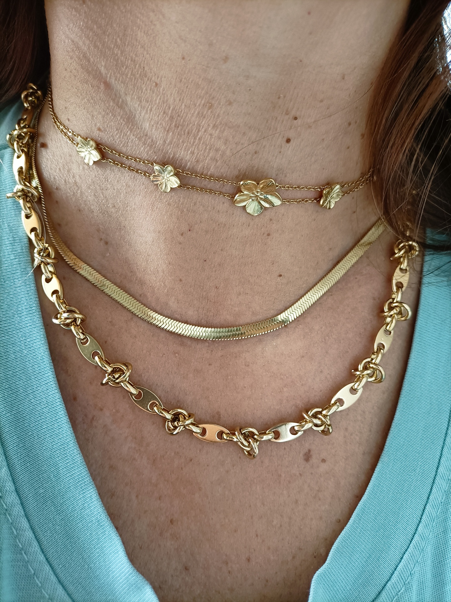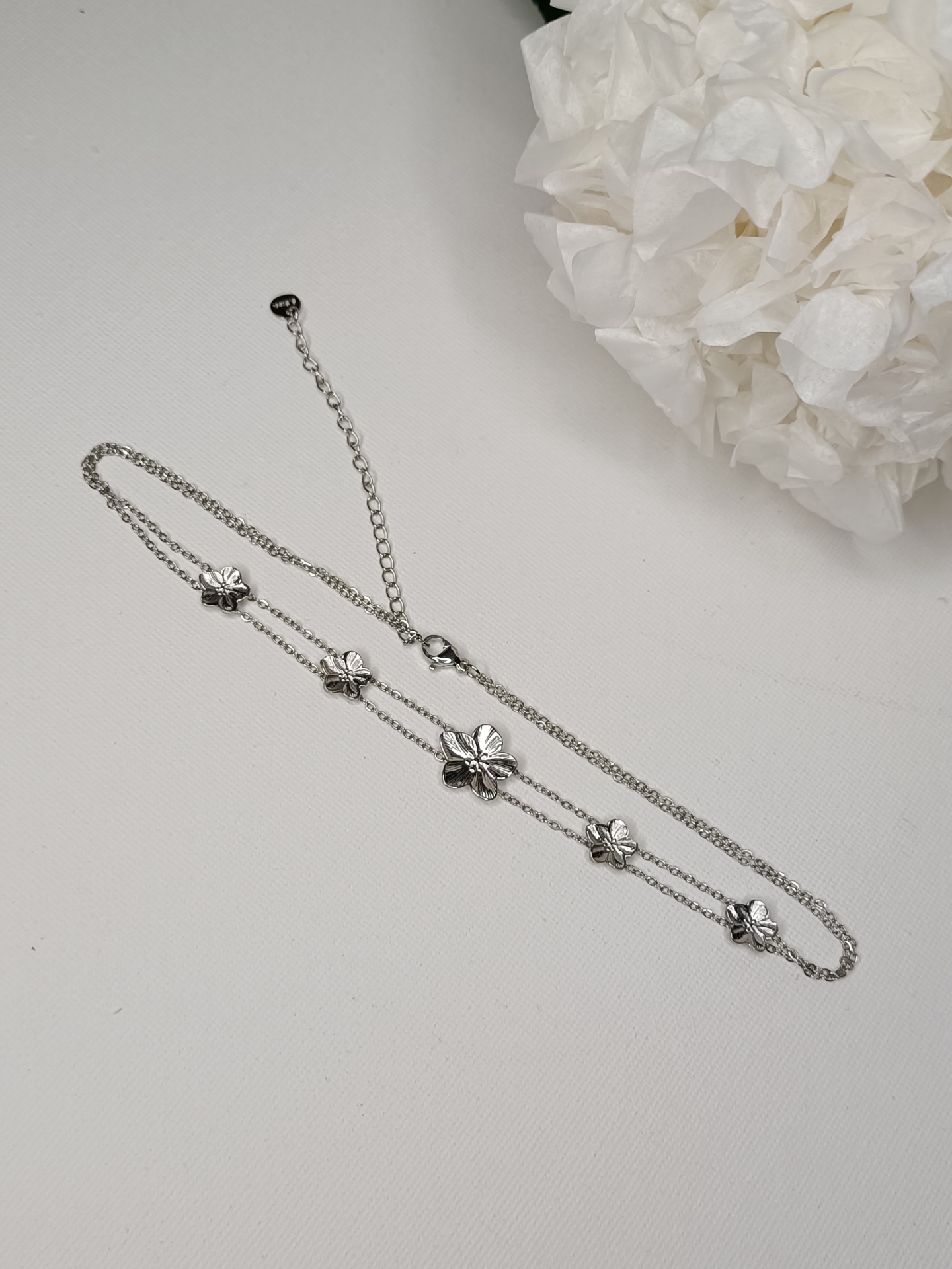 Colar Choker Magy 13,90 € Desconto de %. Partilhar Cor Dourado Prateado Comprar Contactar SKU: MB60 Colar choker com corrente fininha e flores. 🔸 Material: Aço inoxidável 🔸 Comprimento: ajustável (32cm + 7cm de extensão)