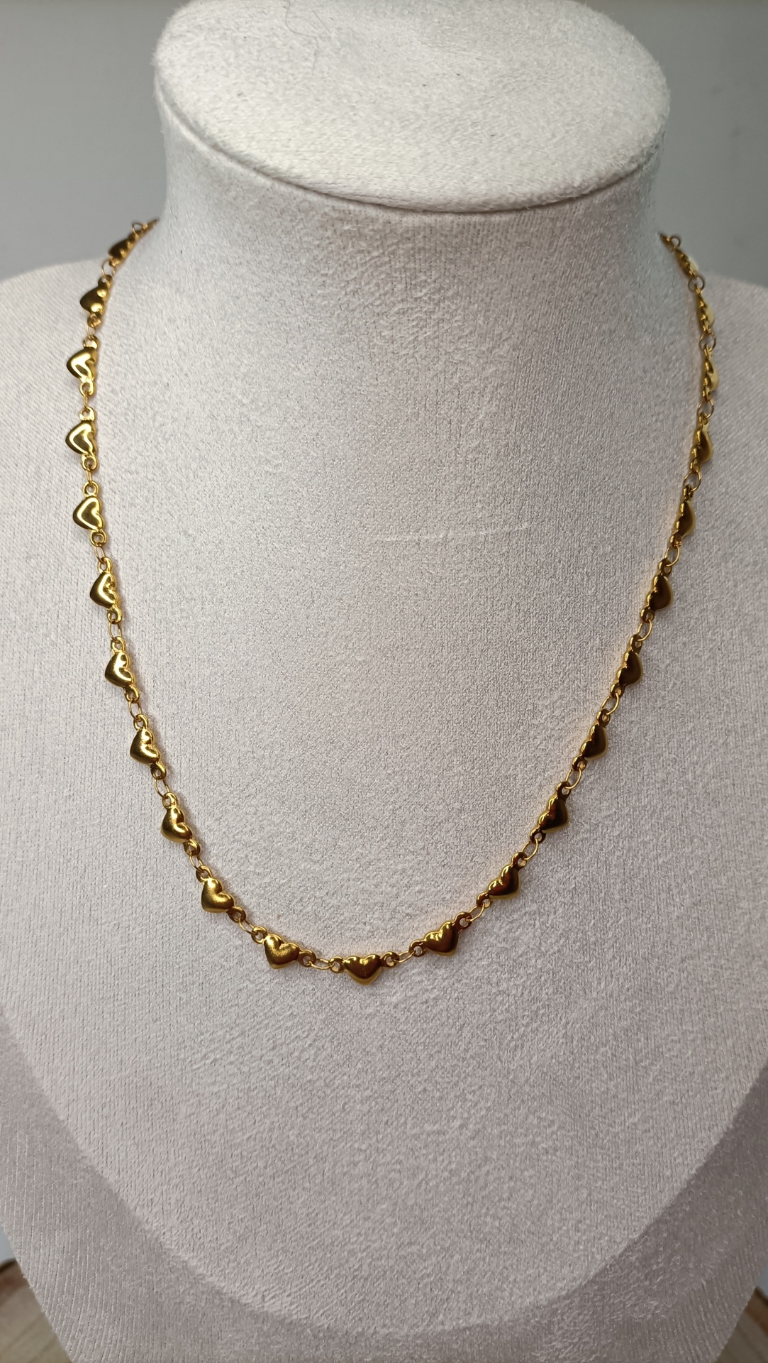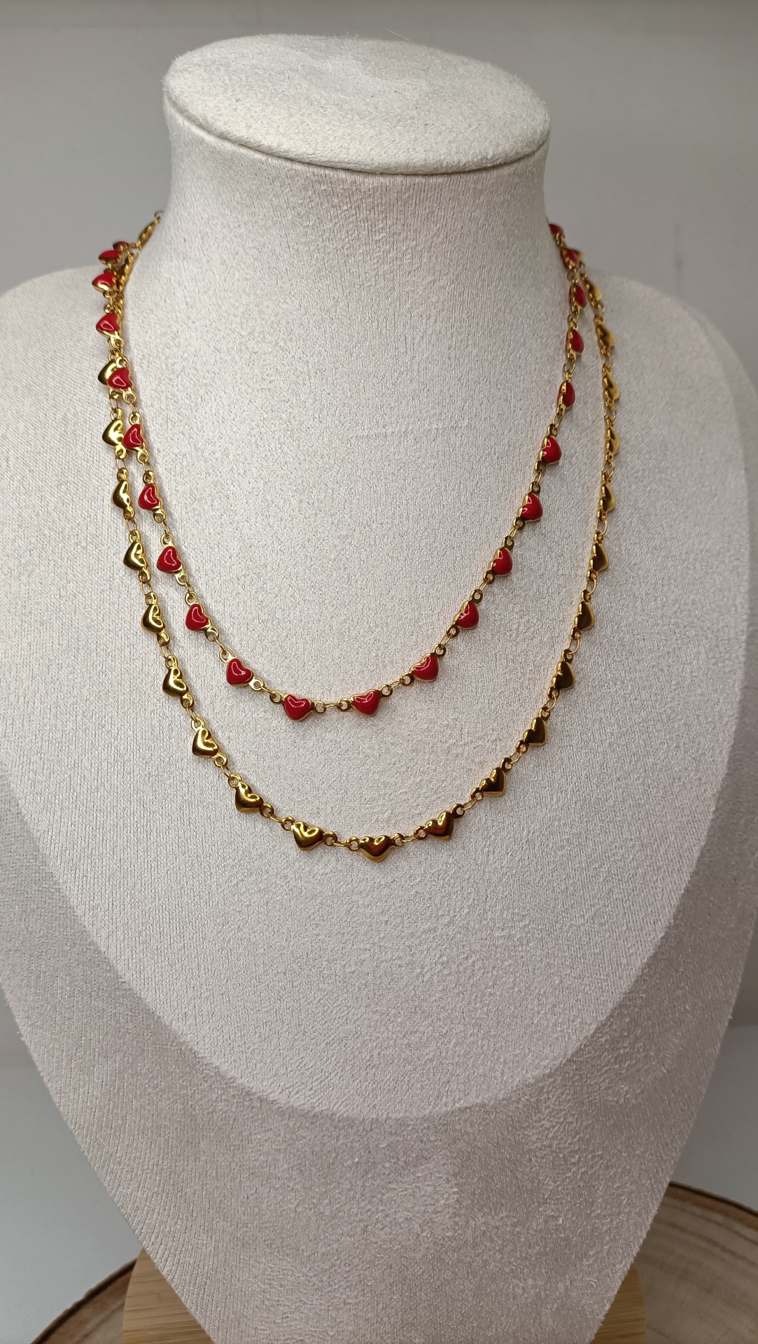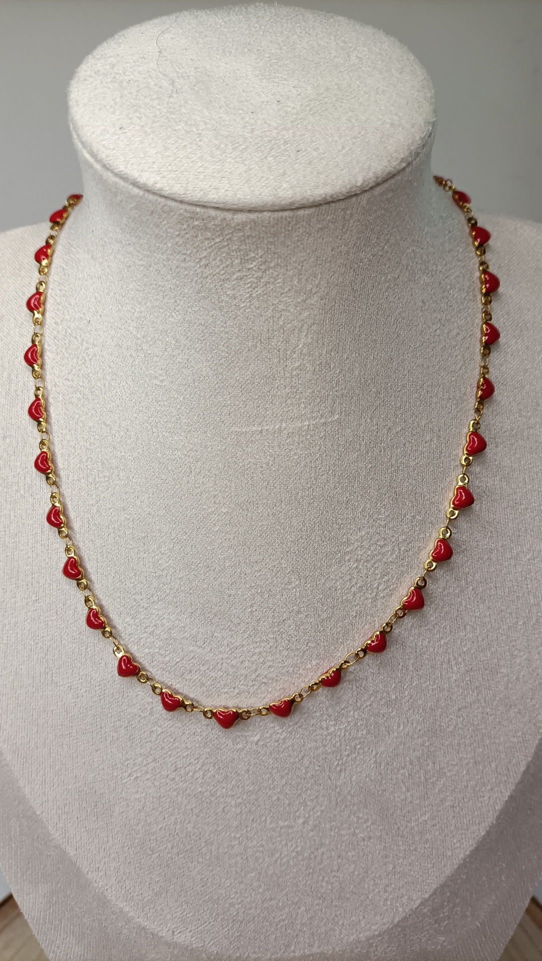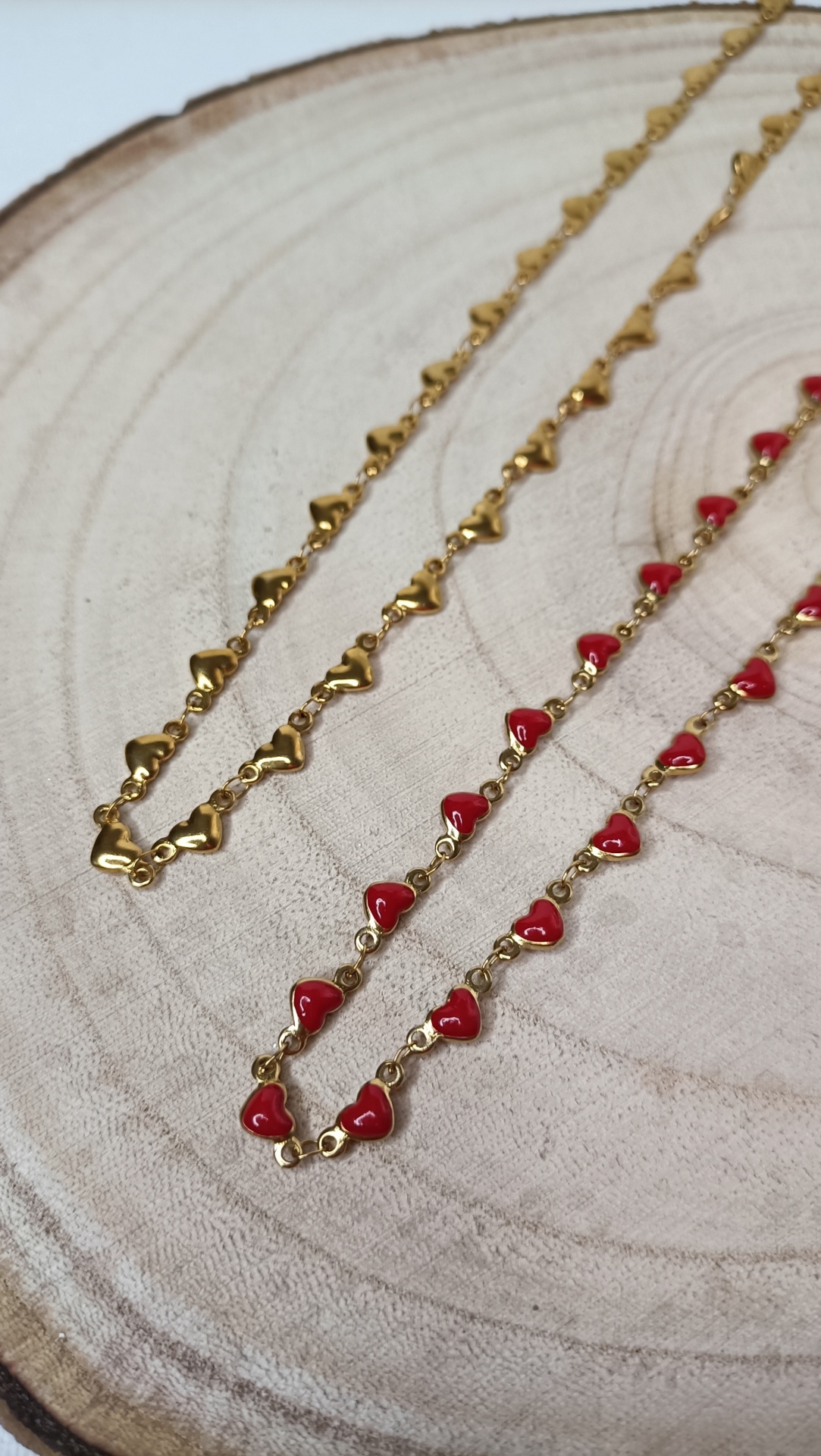 Colar Corações 11,00 € Desconto de %. Partilhar Cor Dourado e Vermelho Dourado Comprar Contactar SKU: MB153 Um colar para qualquer look. Para usar de uma forma simples ou combinado com tantos outros. 🔸 Material: Aço inoxidável 🔸 Comprimento: ajustável (42cm + 5cm de extensão)