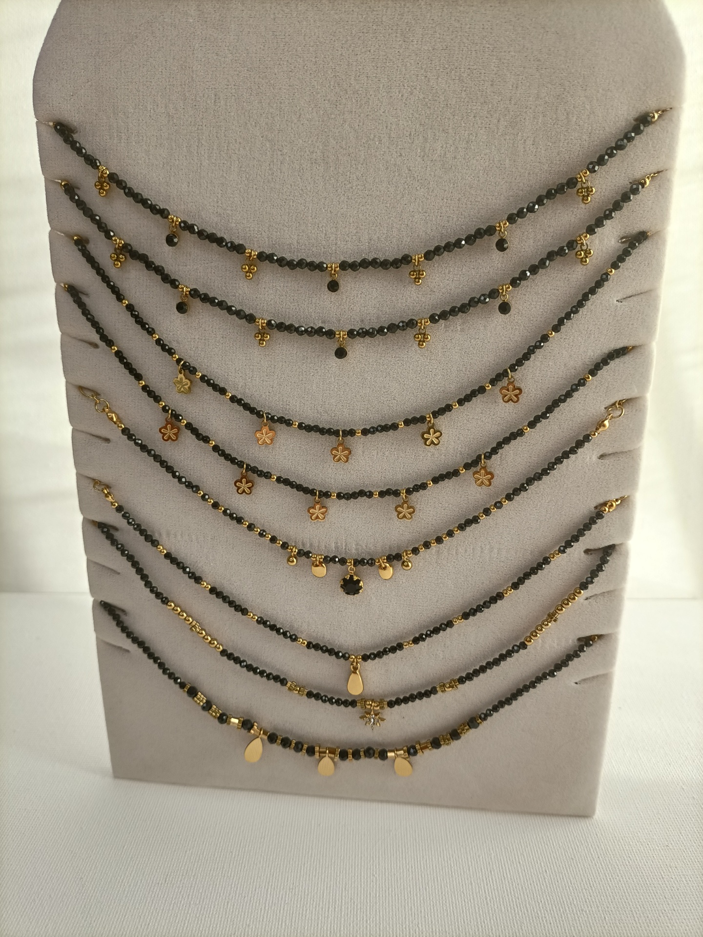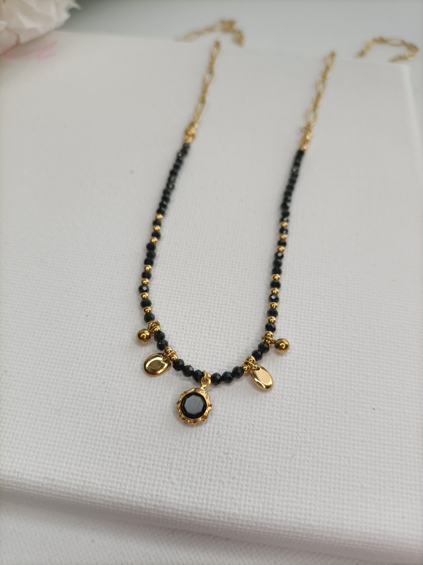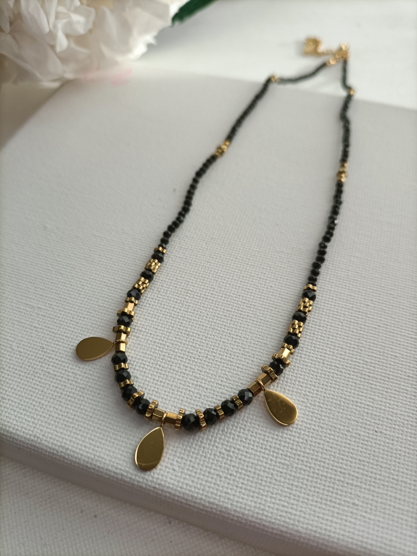 Colar Onix Negra 11,00 € Desconto de %. Partilhar Modelo Trevos e cristais/40cm Flores/40cm Cristal preto/46cm Gota/44cm Estrela/42cm Gotas/40cm Comprar Contactar SKU: MB199 Colar com contas onix negra com pendentes. Escolha o que mais se indentifica consigo. 🔸 Material: Aço inoxidável 🔸 Comprimento: ajustável (40cm, 42cm, 44cm e 46cm + 5cm) O ônix preto é uma pedra de proteção, força e estabilidade, conhecida por absorver e proteger contra energias negativas. Esta explicação não é restritiva ou limitativa, sendo que poderão existir muitas mais interpretações e usos para cada pedra.