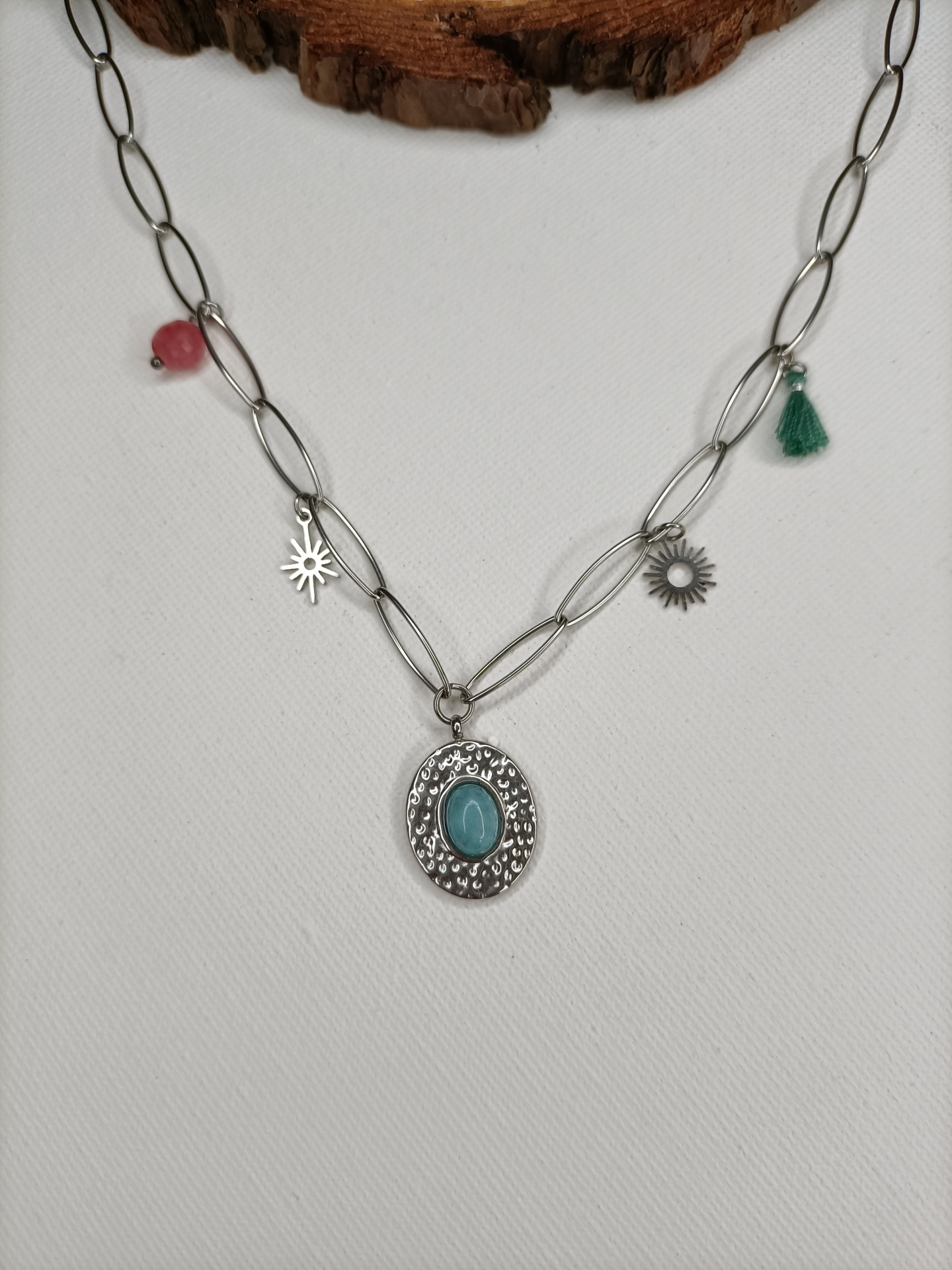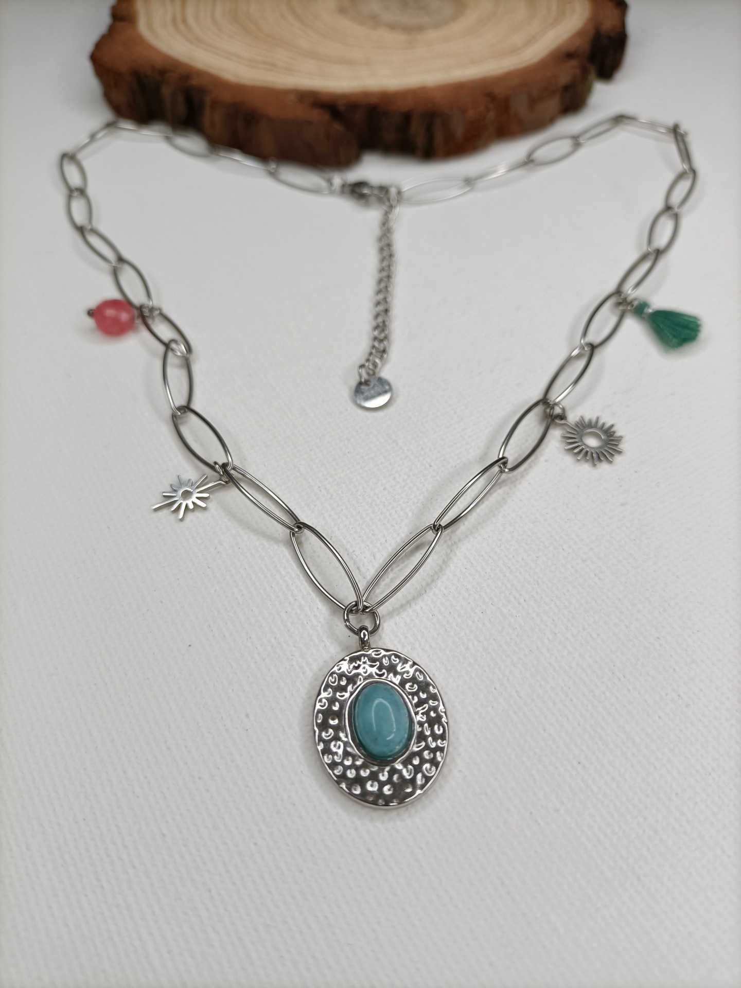 Colar Marilia 6,00 € 12,00 € Desconto de %. Partilhar Comprar Contactar SKU: MB32 Numa corrente com elos ovais e vários charmes, que tornam este colar uma peça cheia de personalidade. 🔸 Material: Aço inoxidável 🔸 Comprimento: ajustável (42cm + 5cm de extensão)
