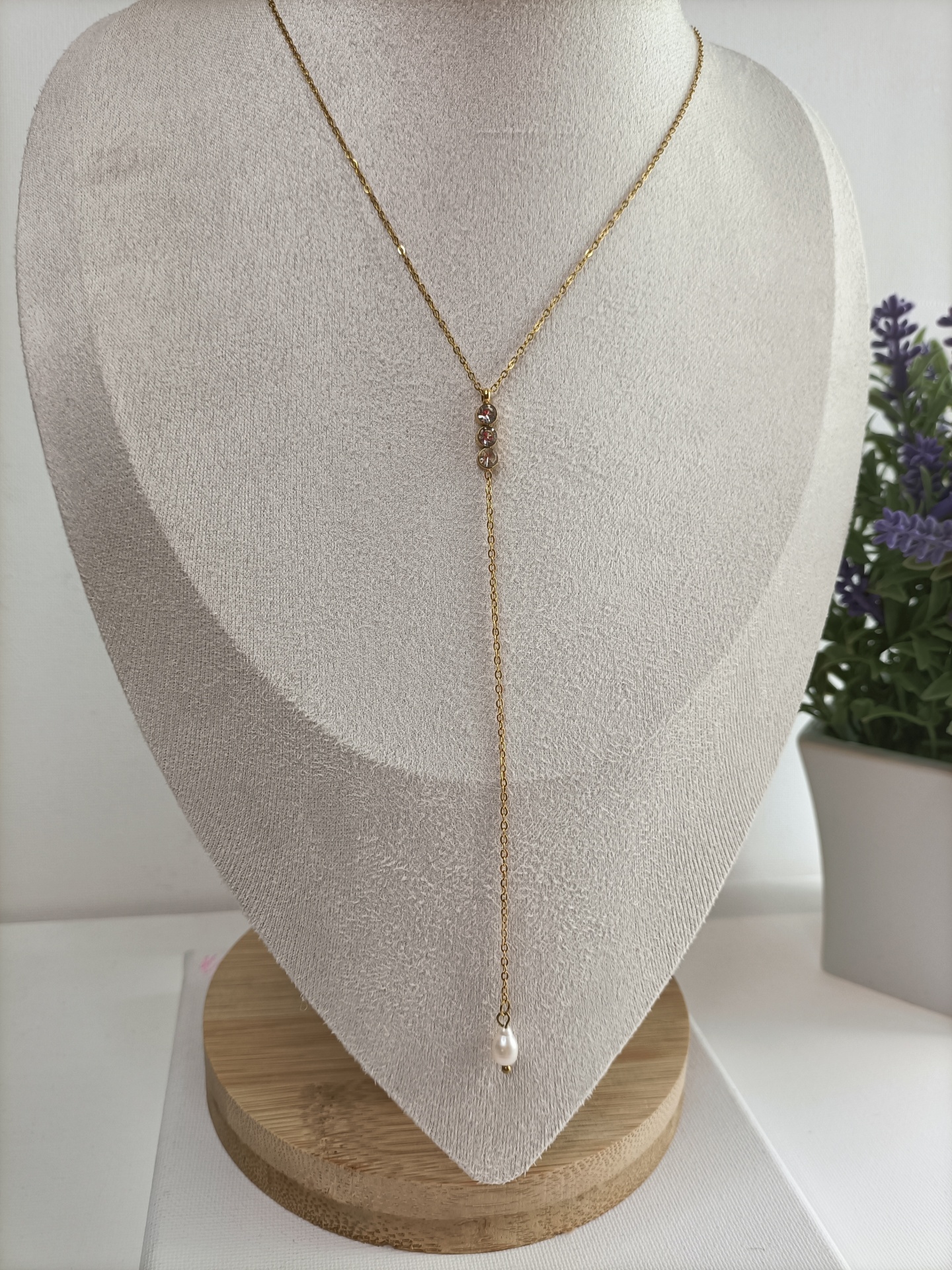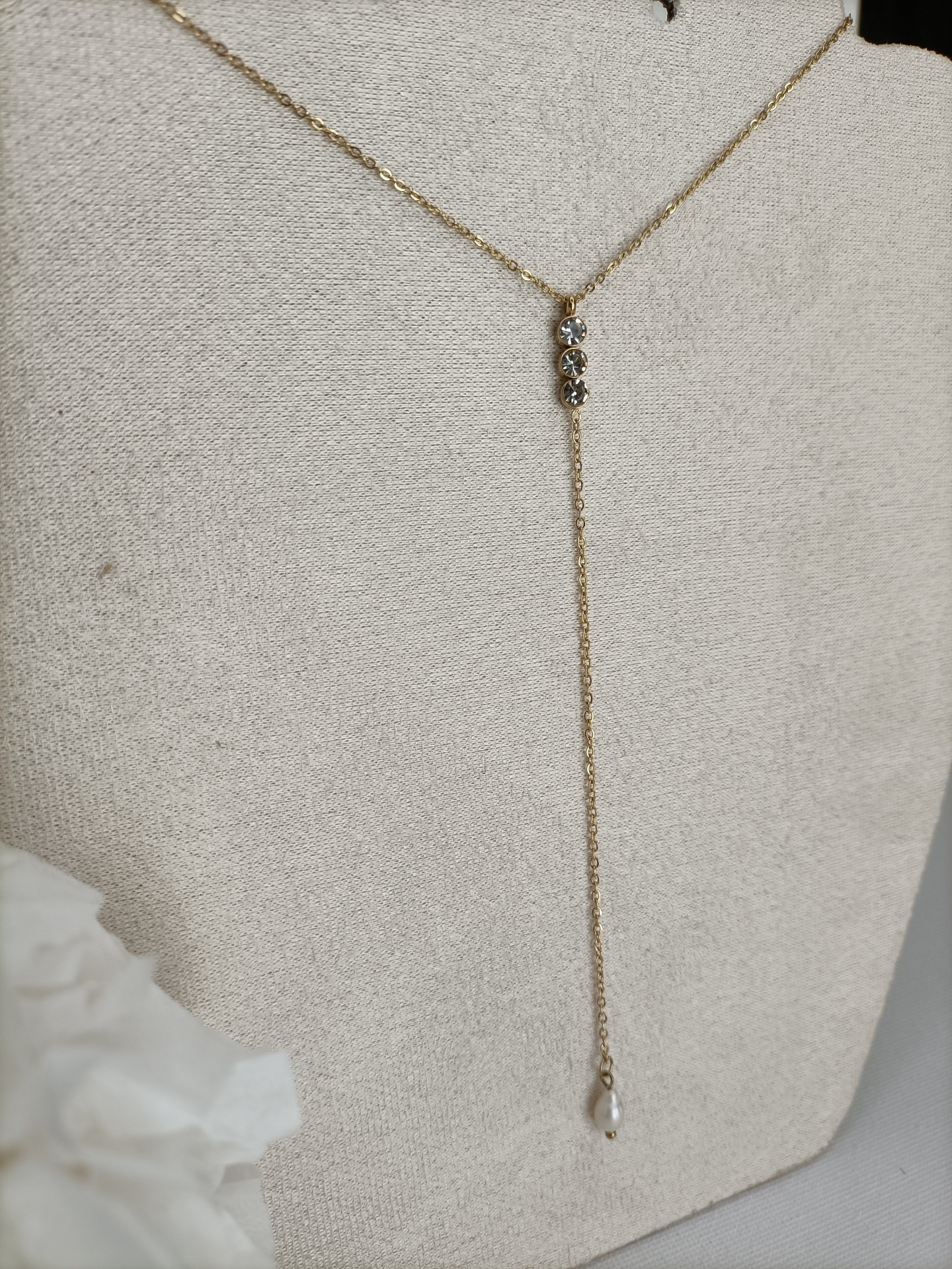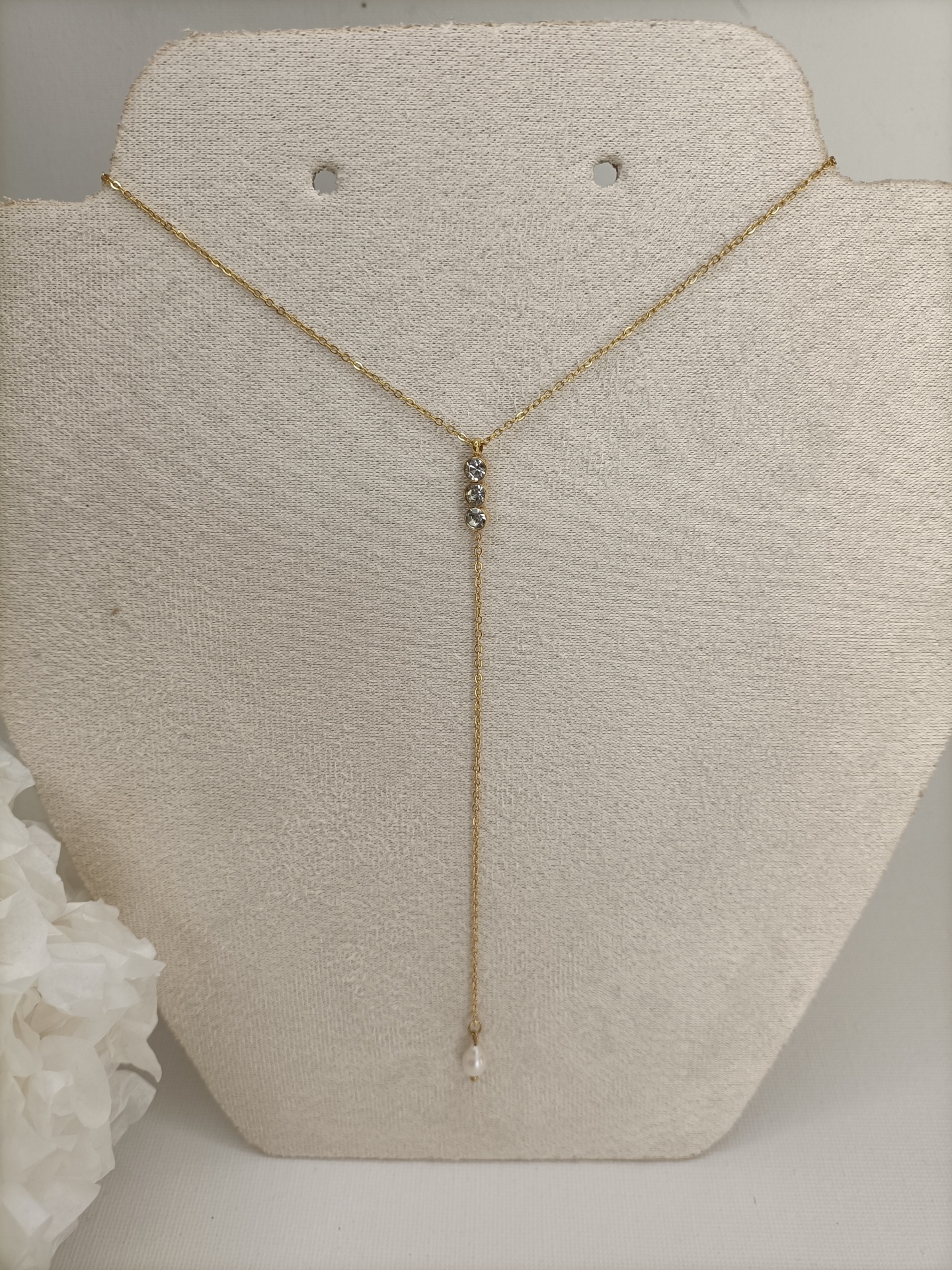 Colar Nice 9,90 € Desconto de %. Partilhar Comprar Contactar SKU: MB127 Colar em Y, corrente fininha com três zirconias e pérola. Nice a Deusa da Vitória. 🔸 Material: Aço inoxidável 🔸 Comprimento: ajustável (38cm + 4cm)