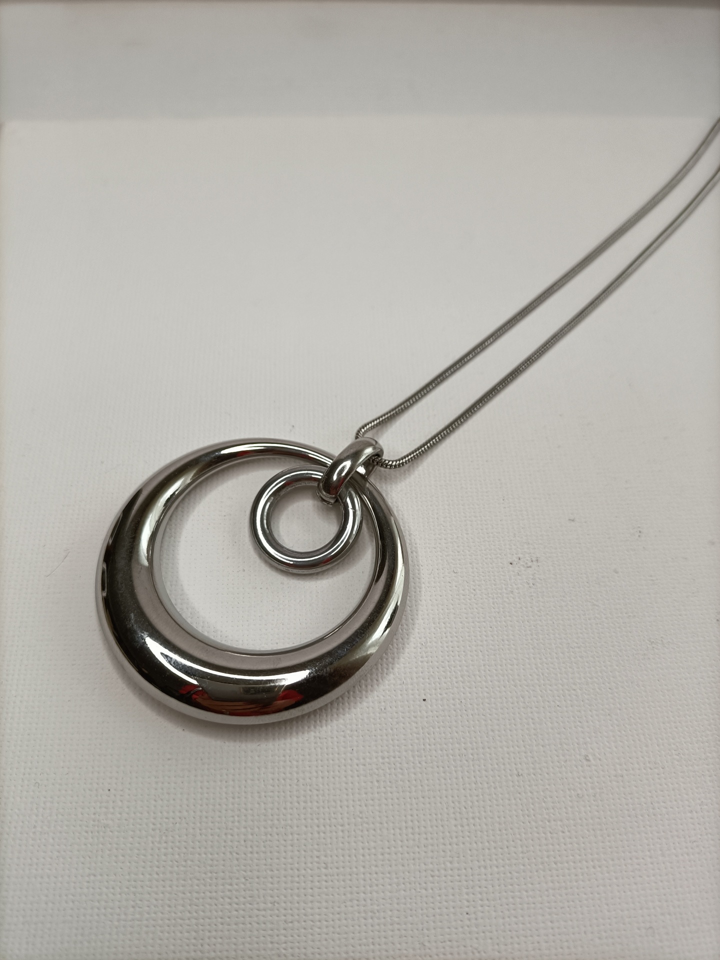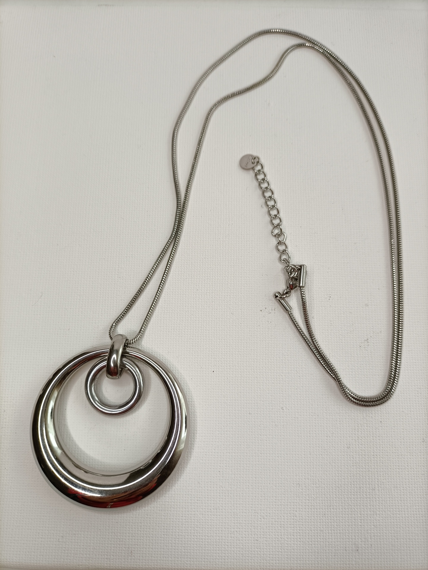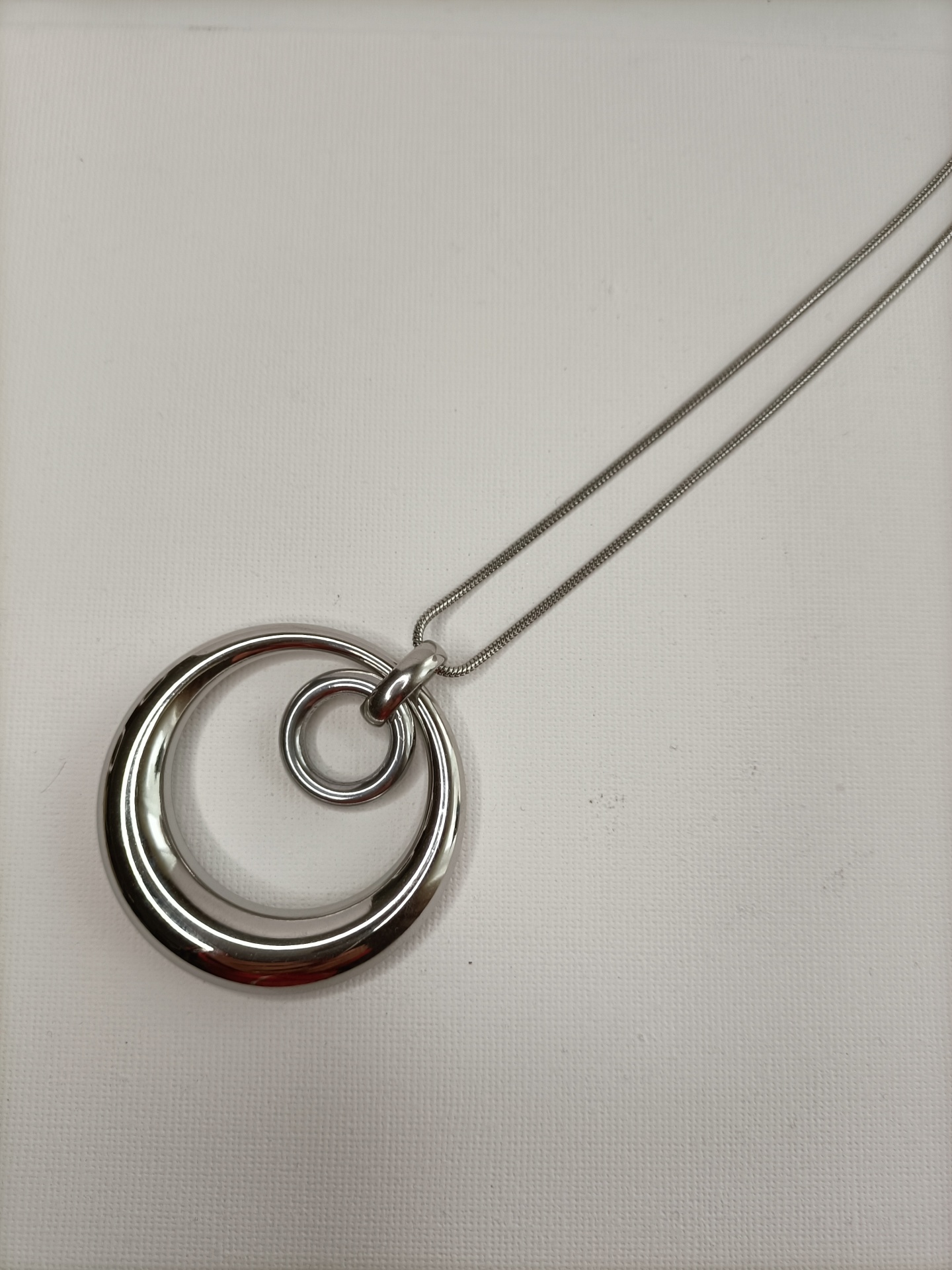 • Colar prateado com pingente de dois anéis circulares