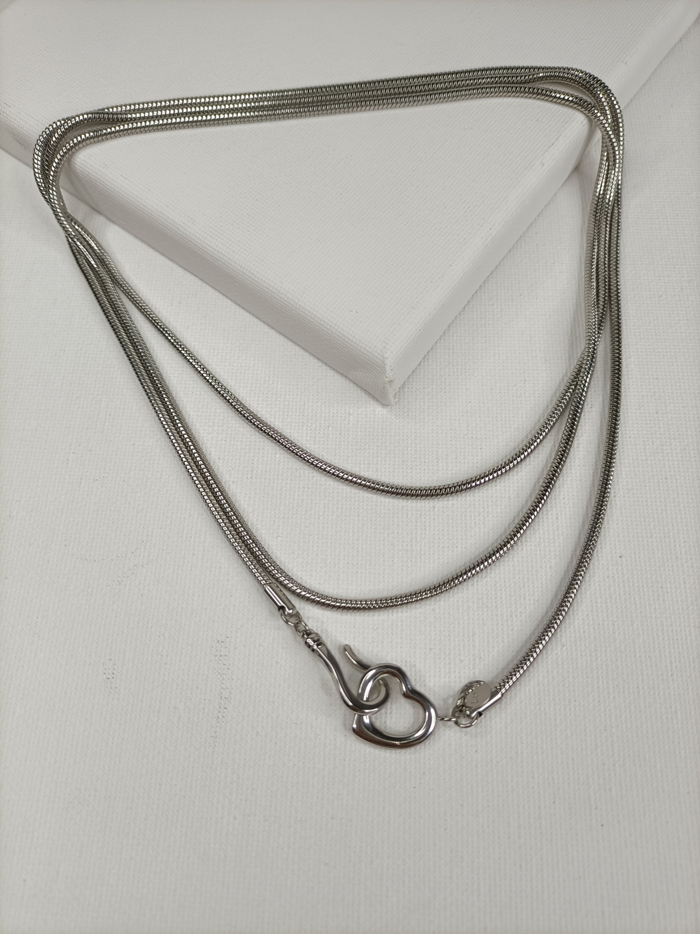• Colar prateado com fecho decorativo sobre fundo branco