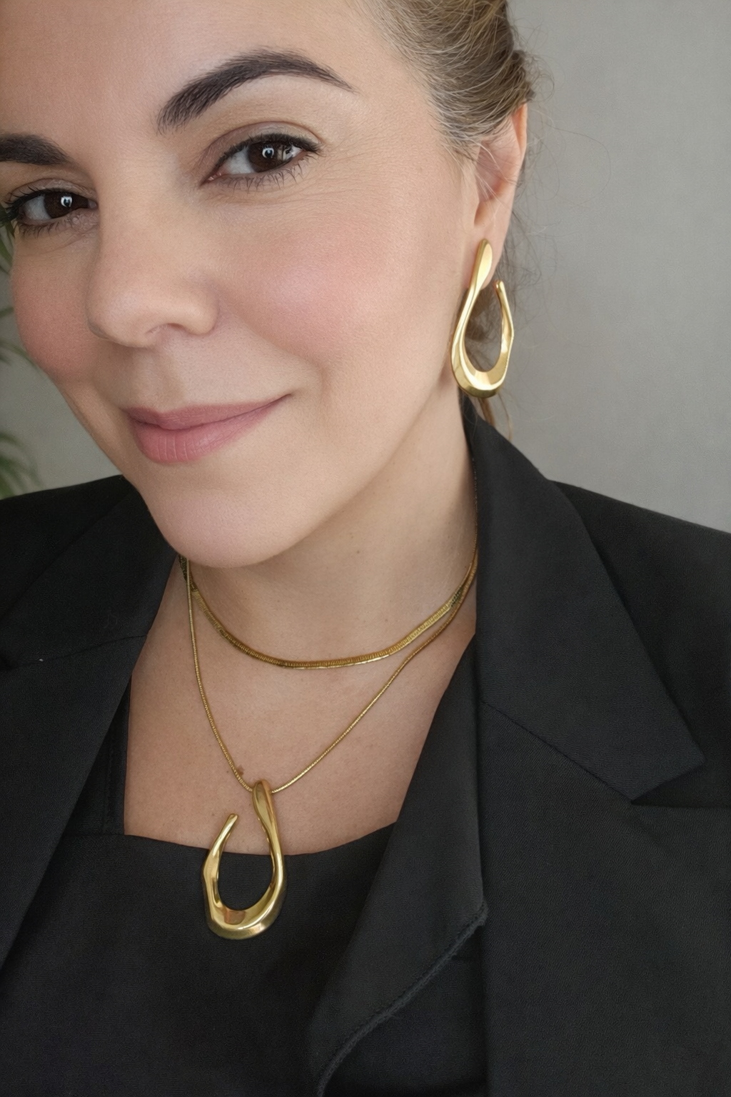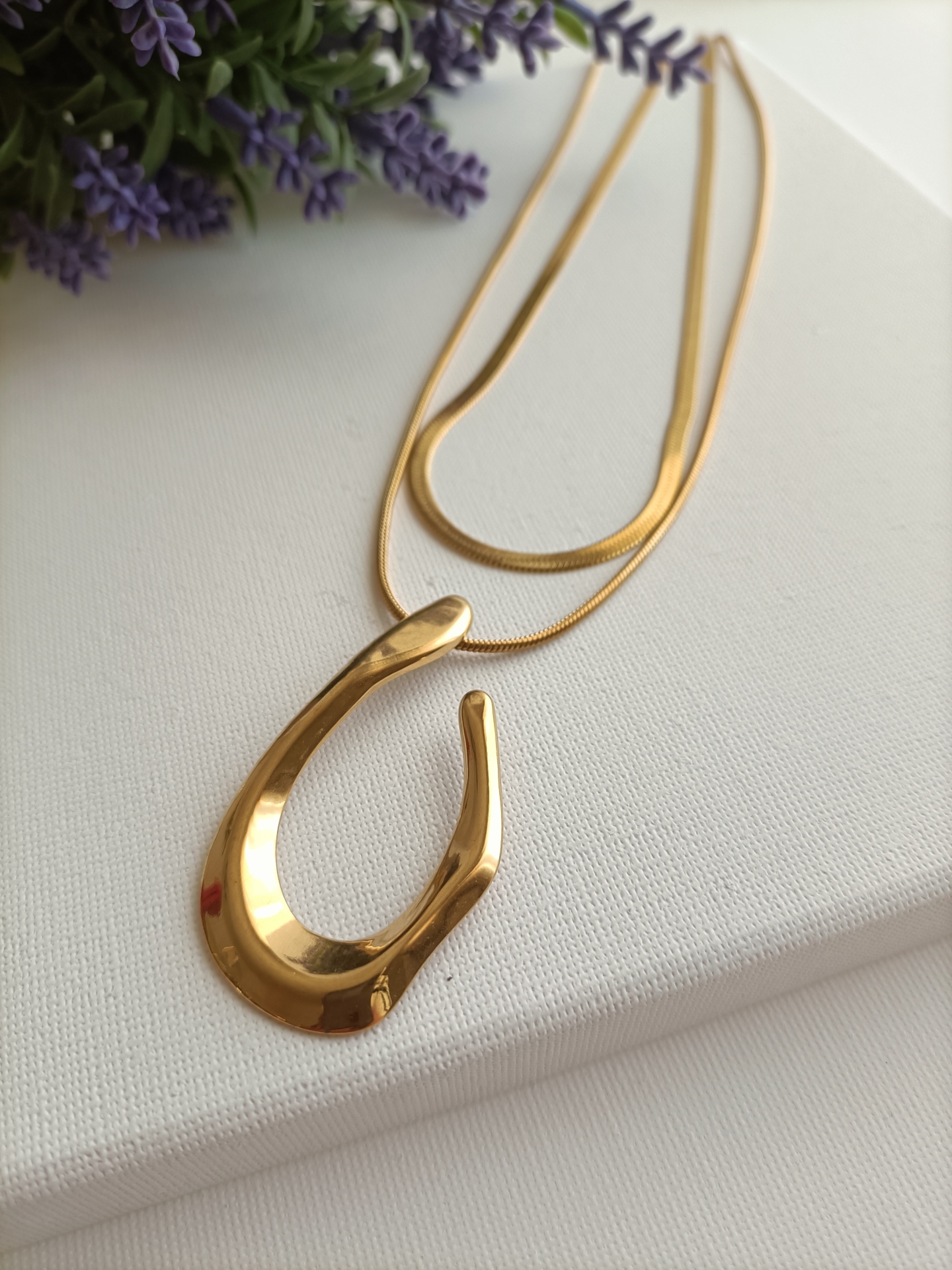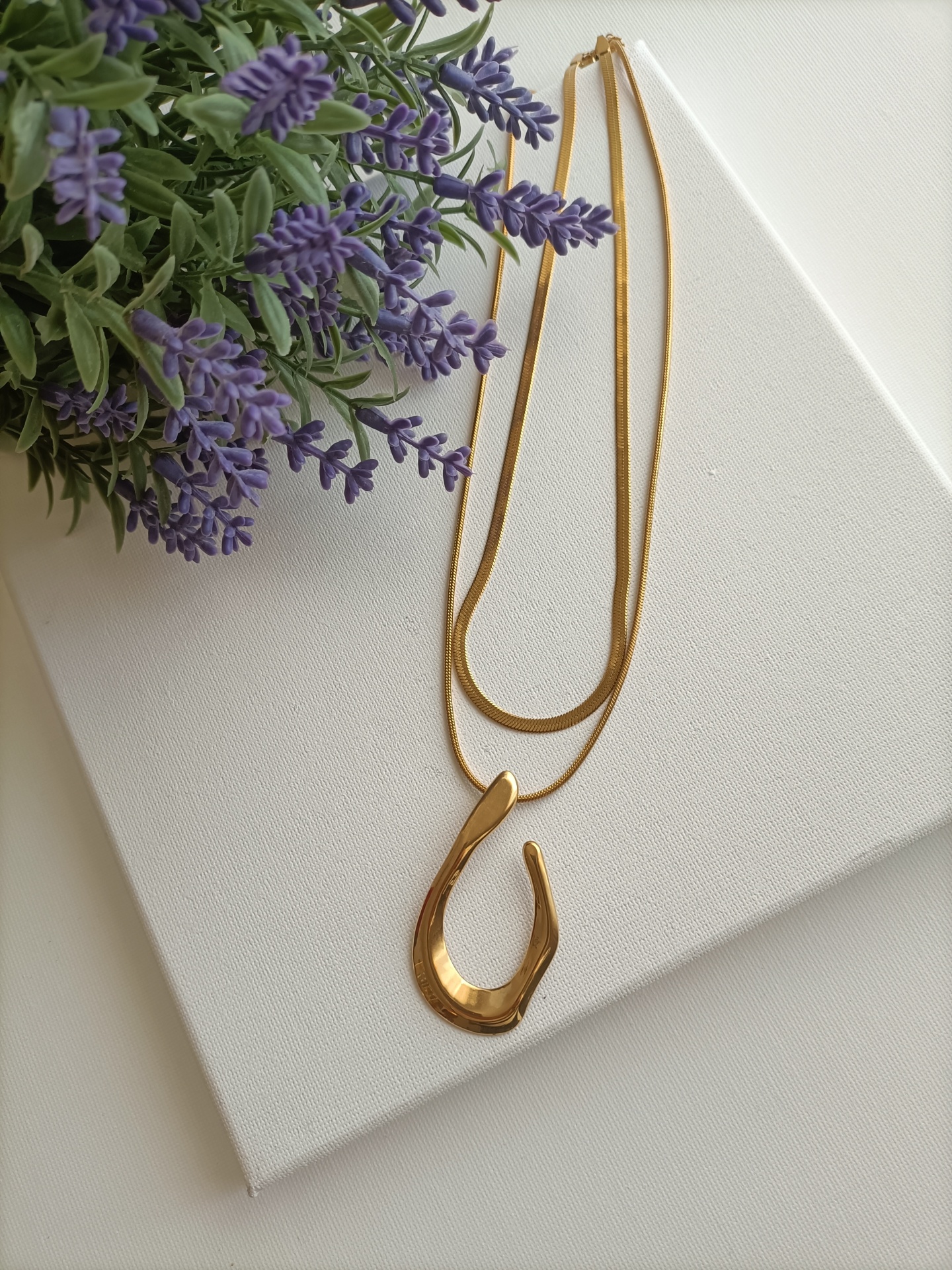 Dois colares que podes usar juntos ou separados. Corrente serpente em redondo com pendente e o outro com corrente serpente espalmada. A escolha ideal para quem procura um acessório marcante.