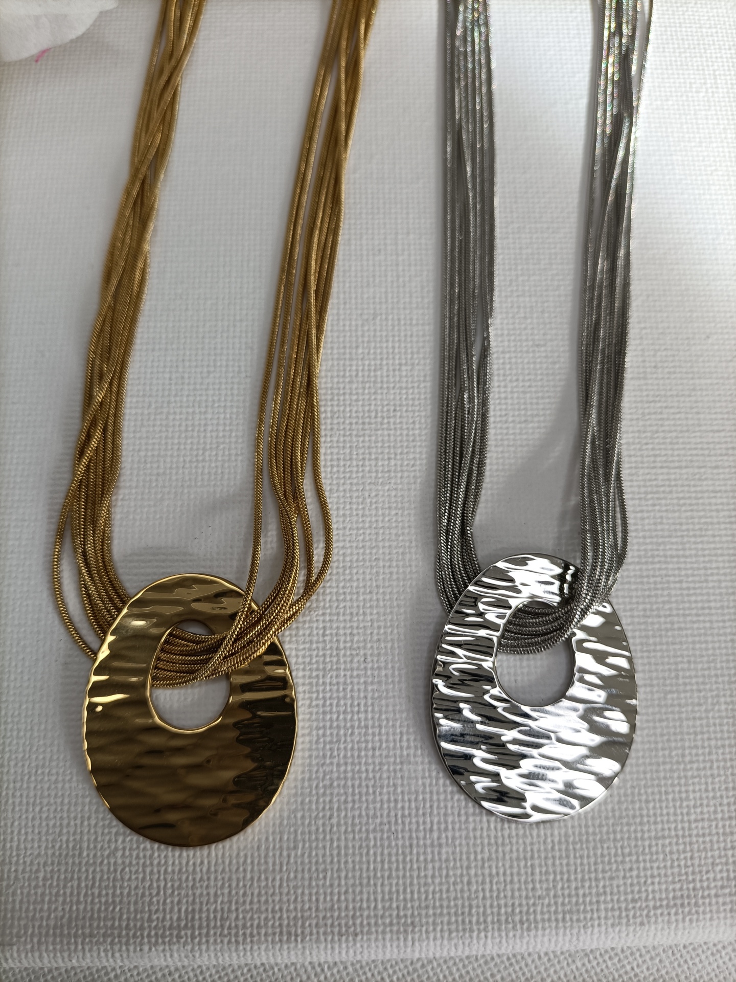 Colar Medalha 14,50 € Desconto de %. Partilhar Cor Dourado Prateado Comprar Contactar SKU: MB189 Com sete fiadas de corrente serpente redonda e um pendente, medalha texturada. 🔸 Material: Aço inoxidável 🔸 Comprimento: 3 tamanhos 46, 49 e 52cm