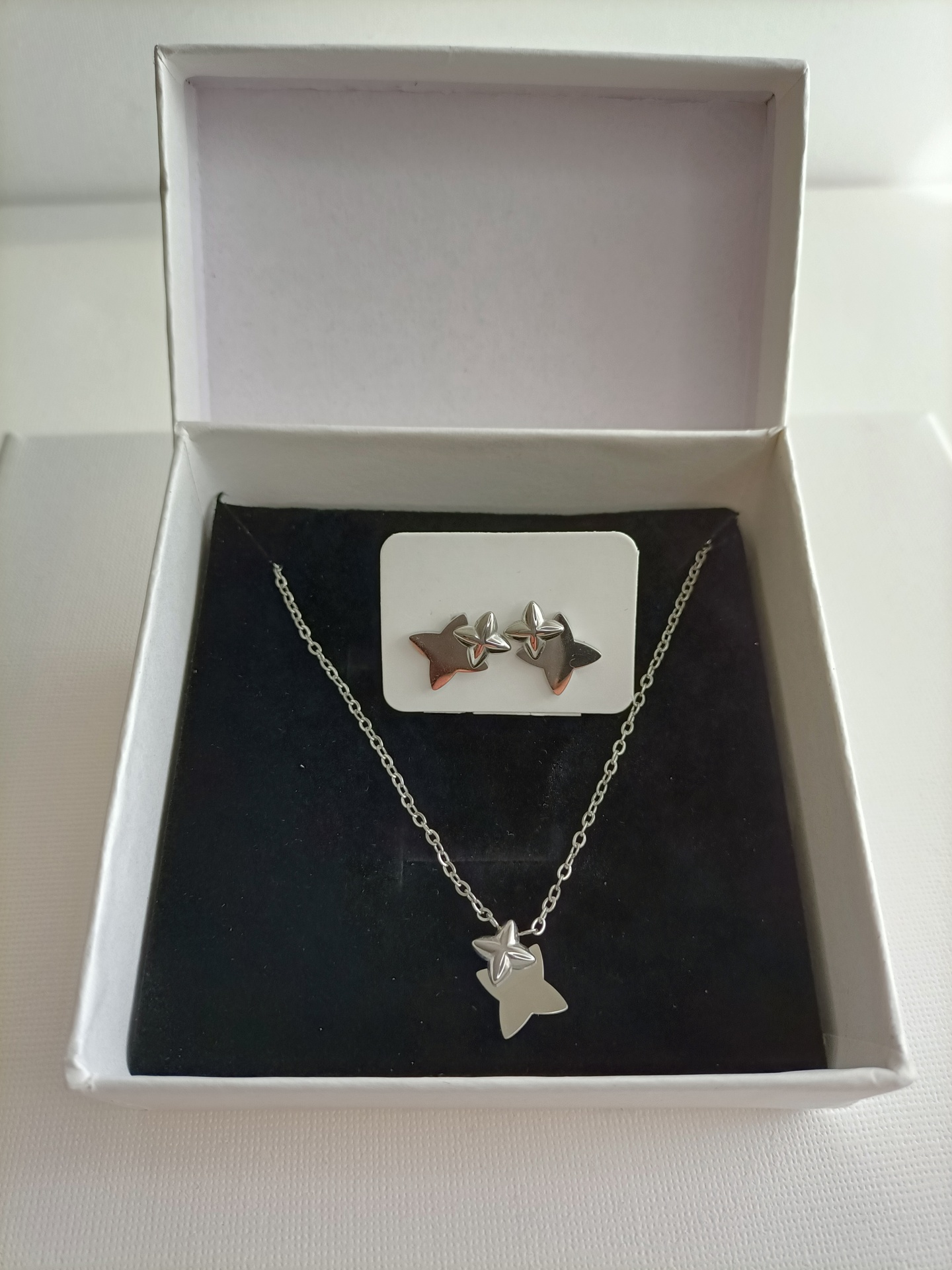 • Conjunto de bijuteria com colar e brincos em forma de estrela