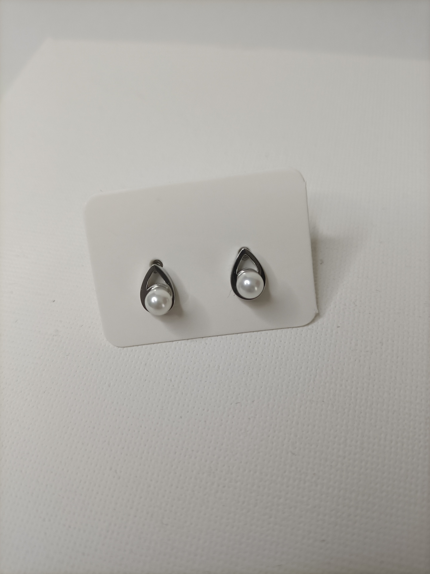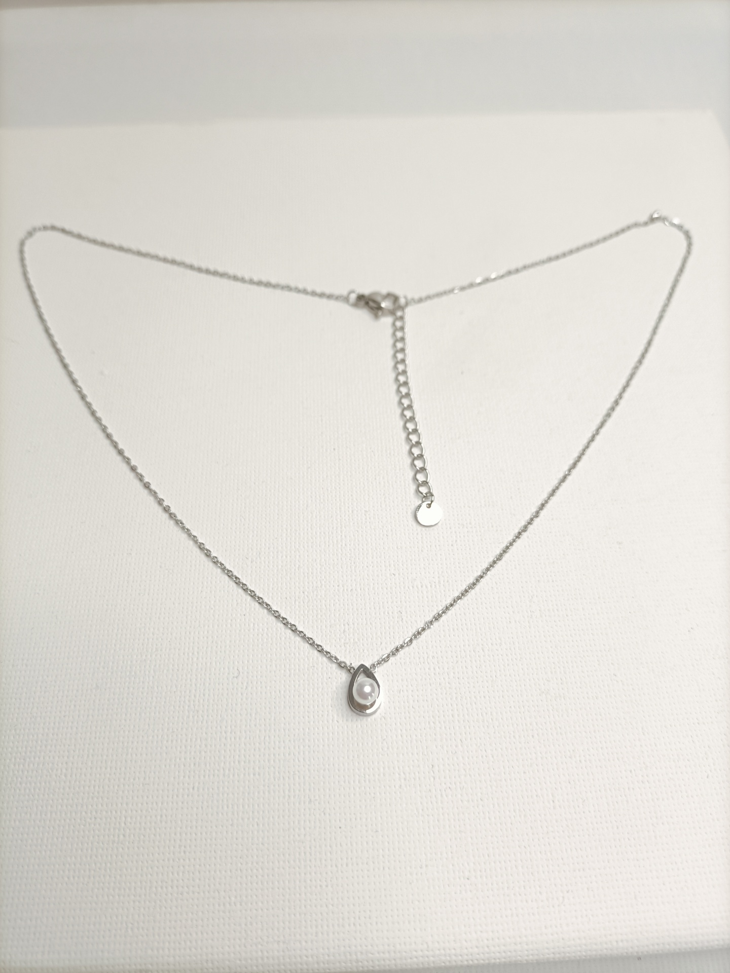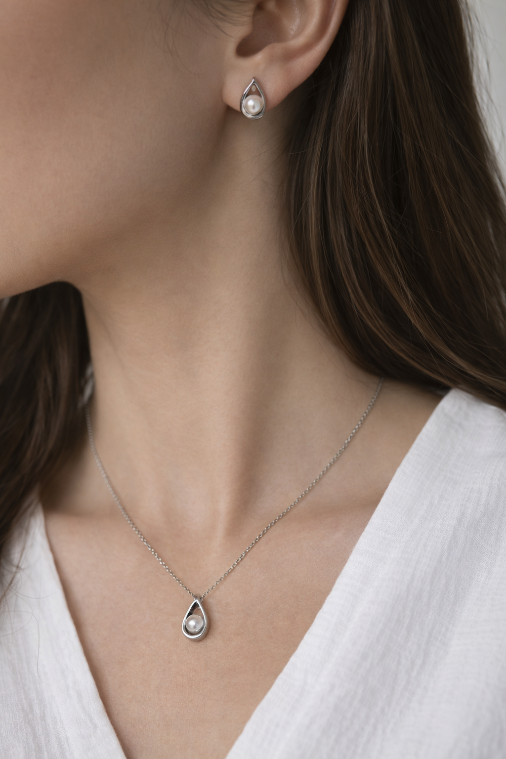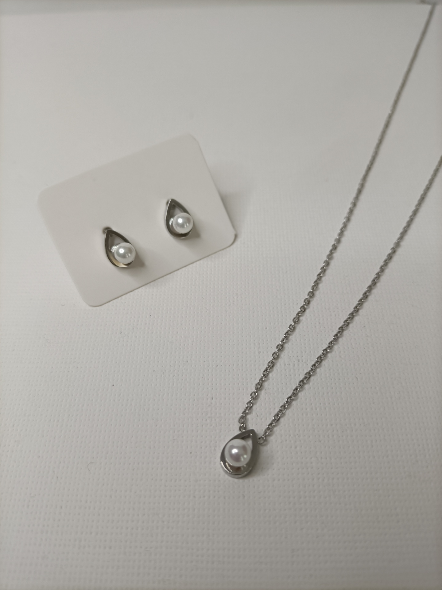 • Brincos e colar com pingente em forma de gota com pérola branca