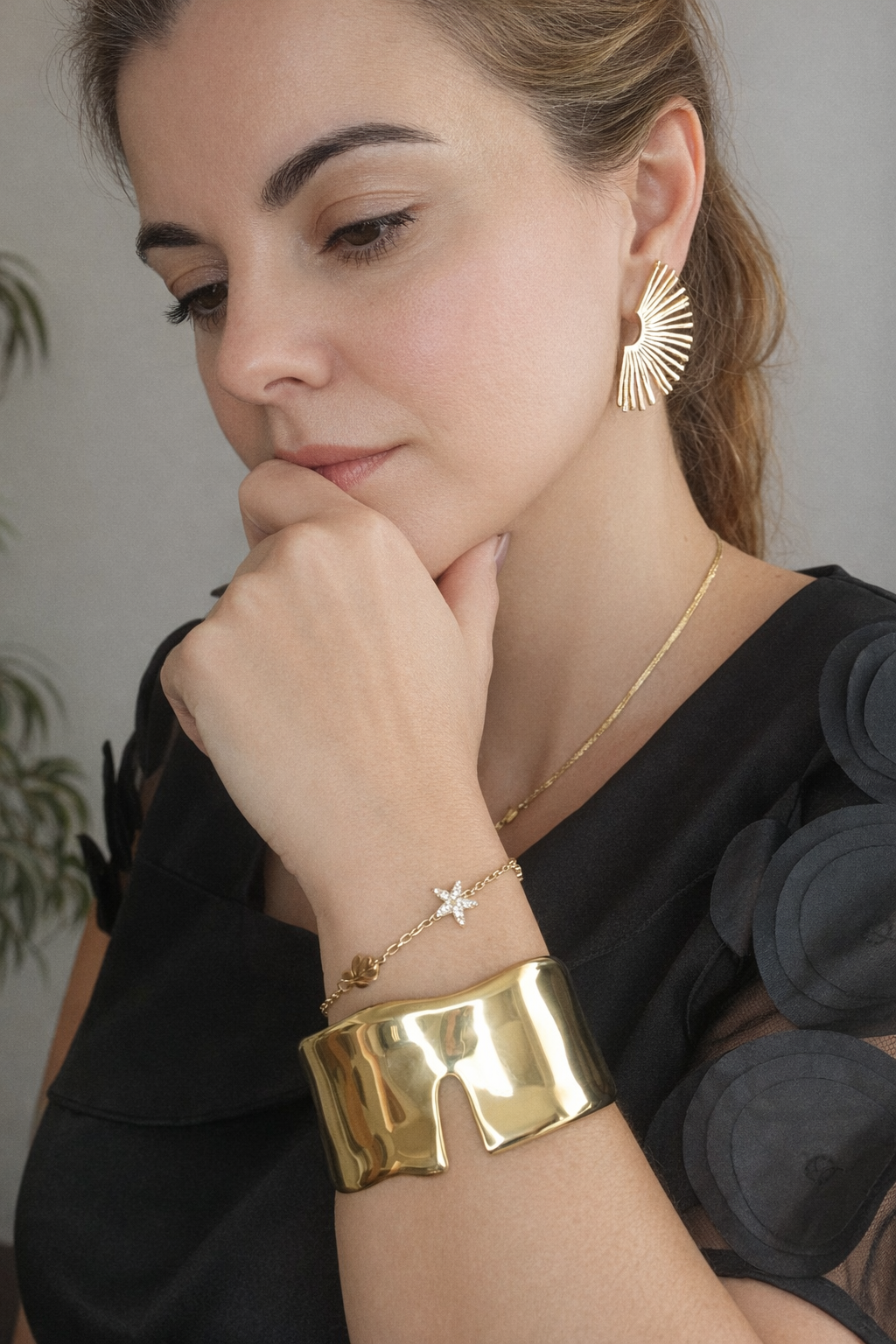 Pulseira Susana 17,90 € Desconto de %. Partilhar Comprar Contactar SKU: MB213 Pulseira larga com cerca de 3cm distribuídos de forma irregular e uma pequena abertura. Ideal para qualquer um dos teus looks. 🔸 Material: Aço inoxidável 🔸 Diâmetro: 6cm (medida interior)